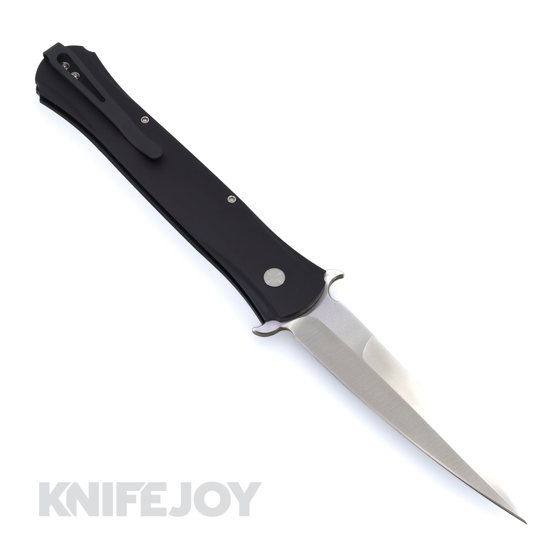 The Large Don is our extra-large distinctive and classic auto knife design that pays particular homage to the classic Italian Stilletto knives who came before it. The handle on each Large Don is 3D machined for a beautiful curved surface across both the handle and inlays. Incredible 4.5” stiletto blade with classic “wing guard” design elements built in. Available in a wide range of configurations, the Large Don is a must for automatic knife enthusiasts.
