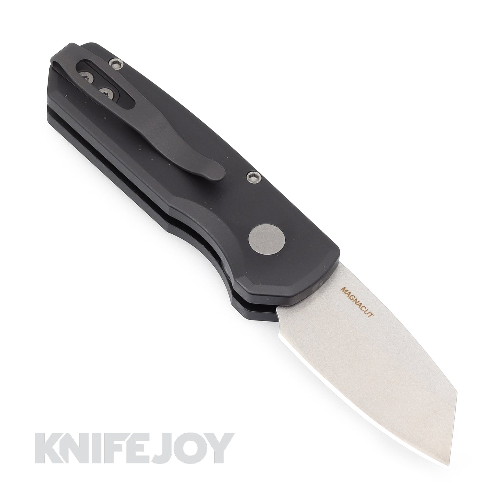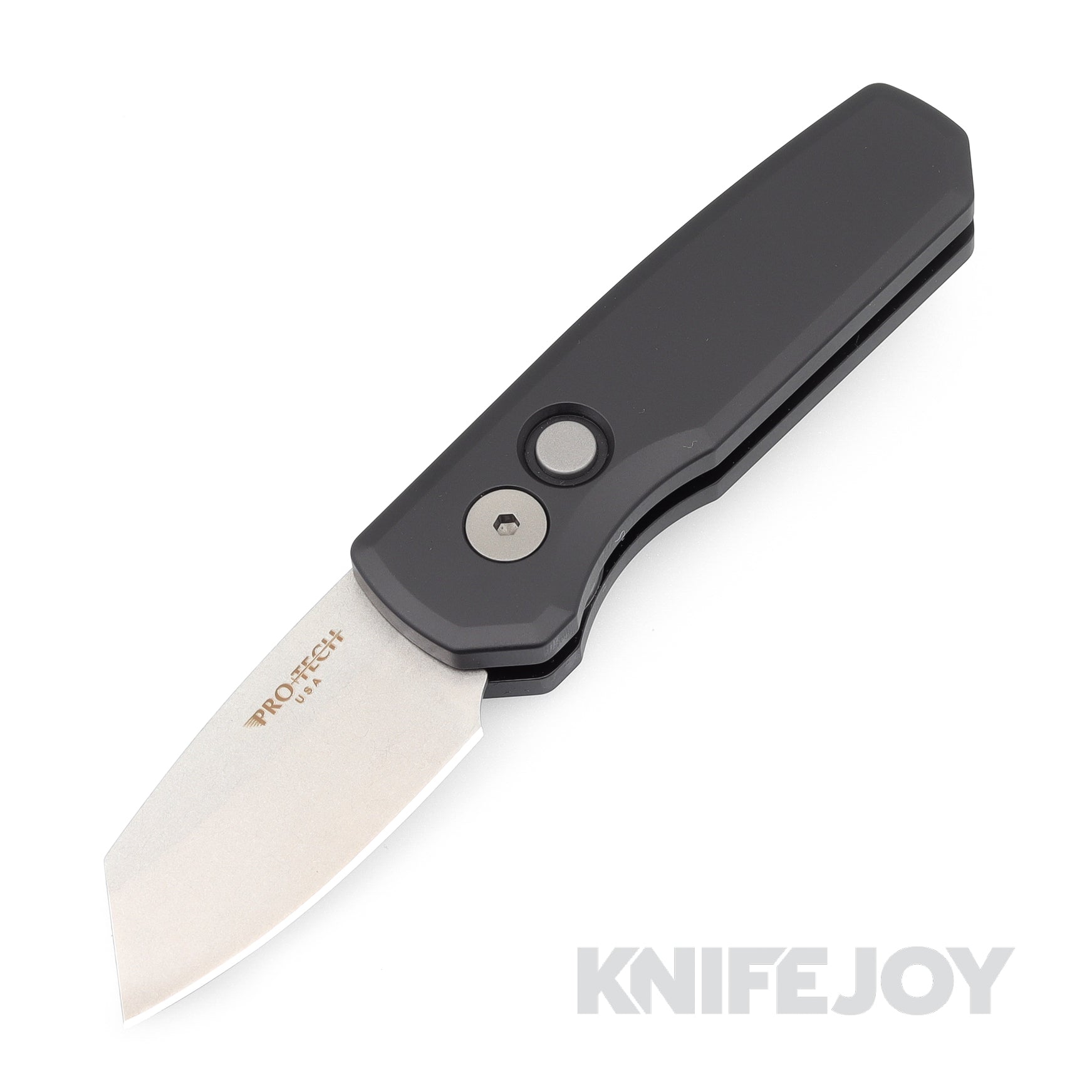 Pro-tech Knives PTR5401 Auto Runt 5 Stonewash Reverse Tanto Magnacut Blade with Black Aluminum Handles