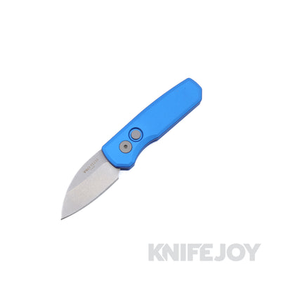 Pro-tech Knives R5301-Blue Auto Runt 5 Stonewash Wharncliffe Magnacut Blade with Smooth Blue Handle / Blasted Hardware and Clip