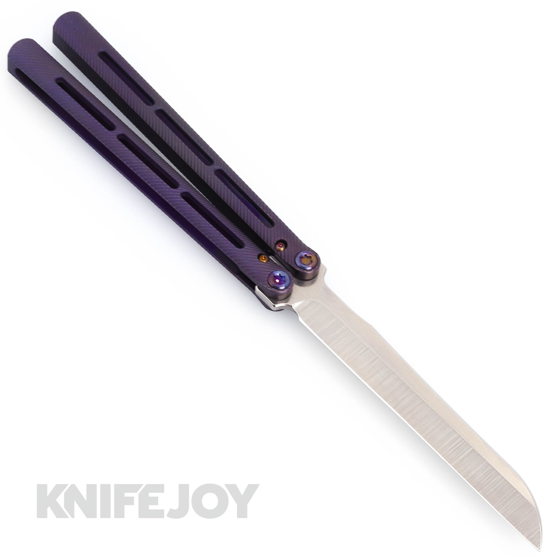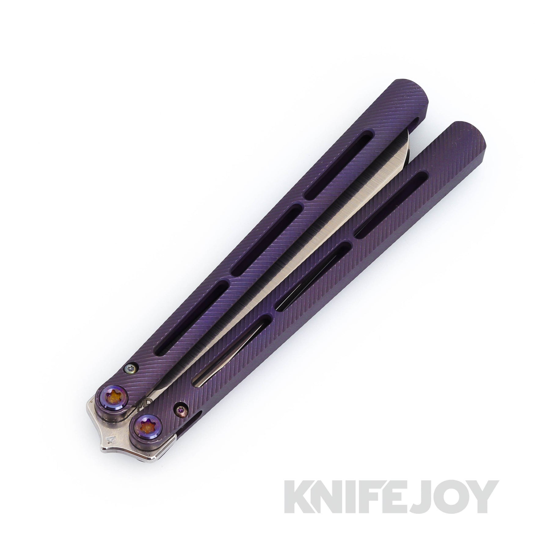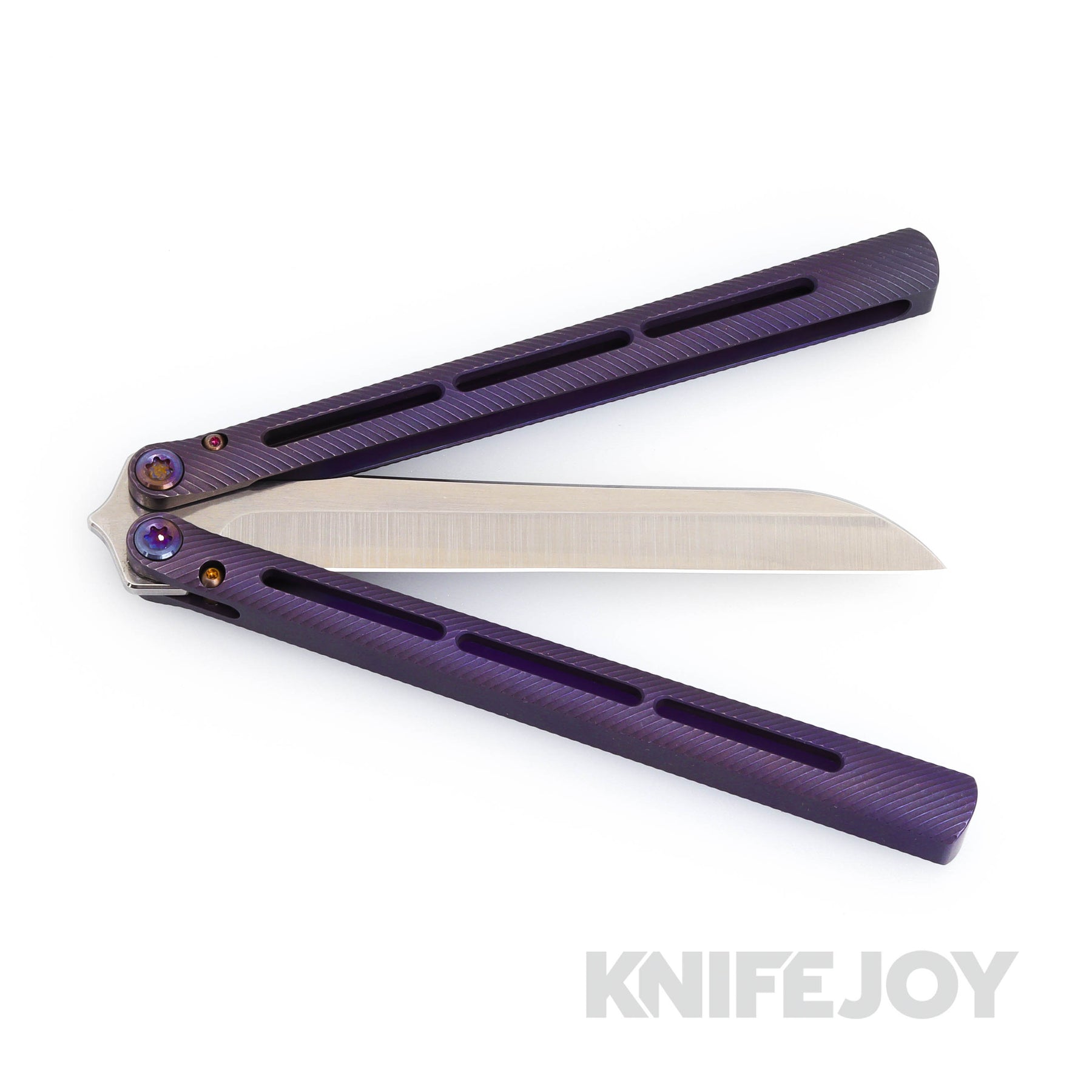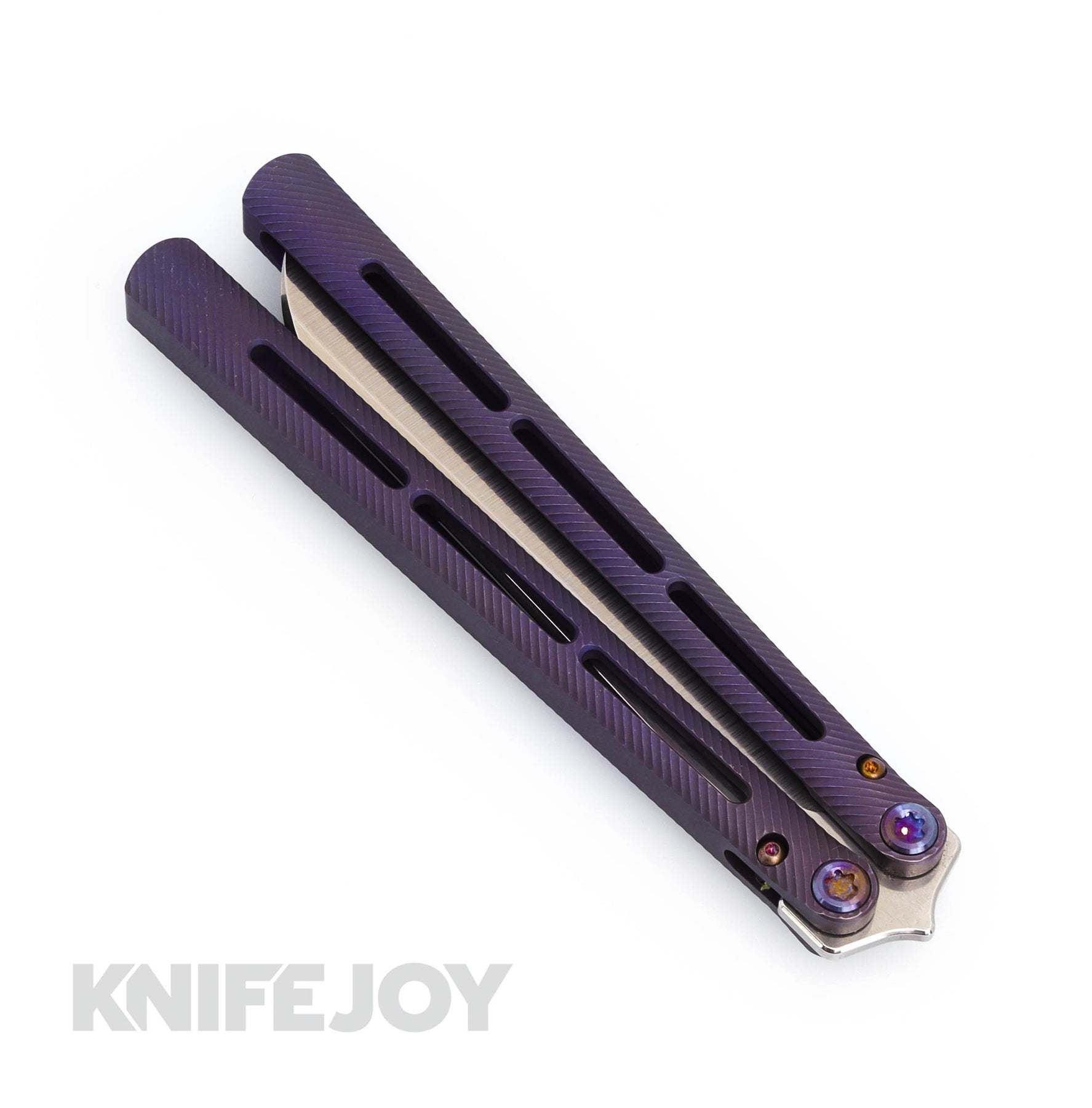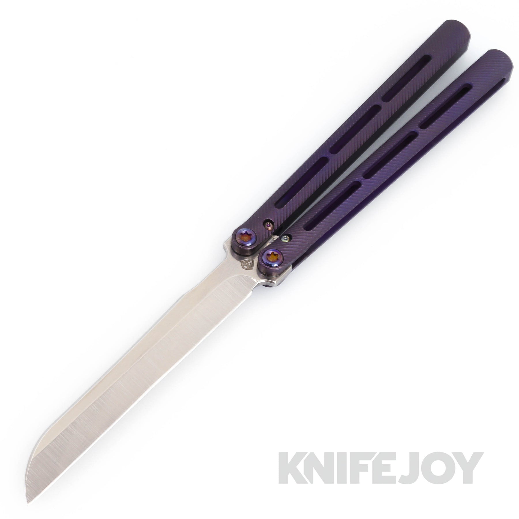Medford Knives Viceroy Balisong Butterfly Knife S45VN Tumbled Sheepsfoot Blade with Violet Titanium Handles/ Flamed Hardware