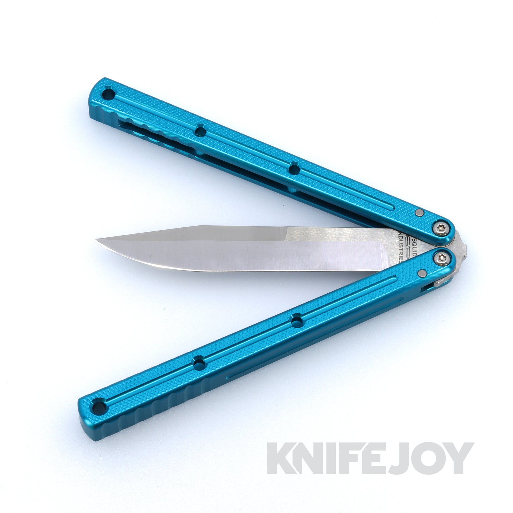 Squid Industries Knives Krake Raken Weehawk Balisong Butterfly Knife Satin Blade with Teal Handles