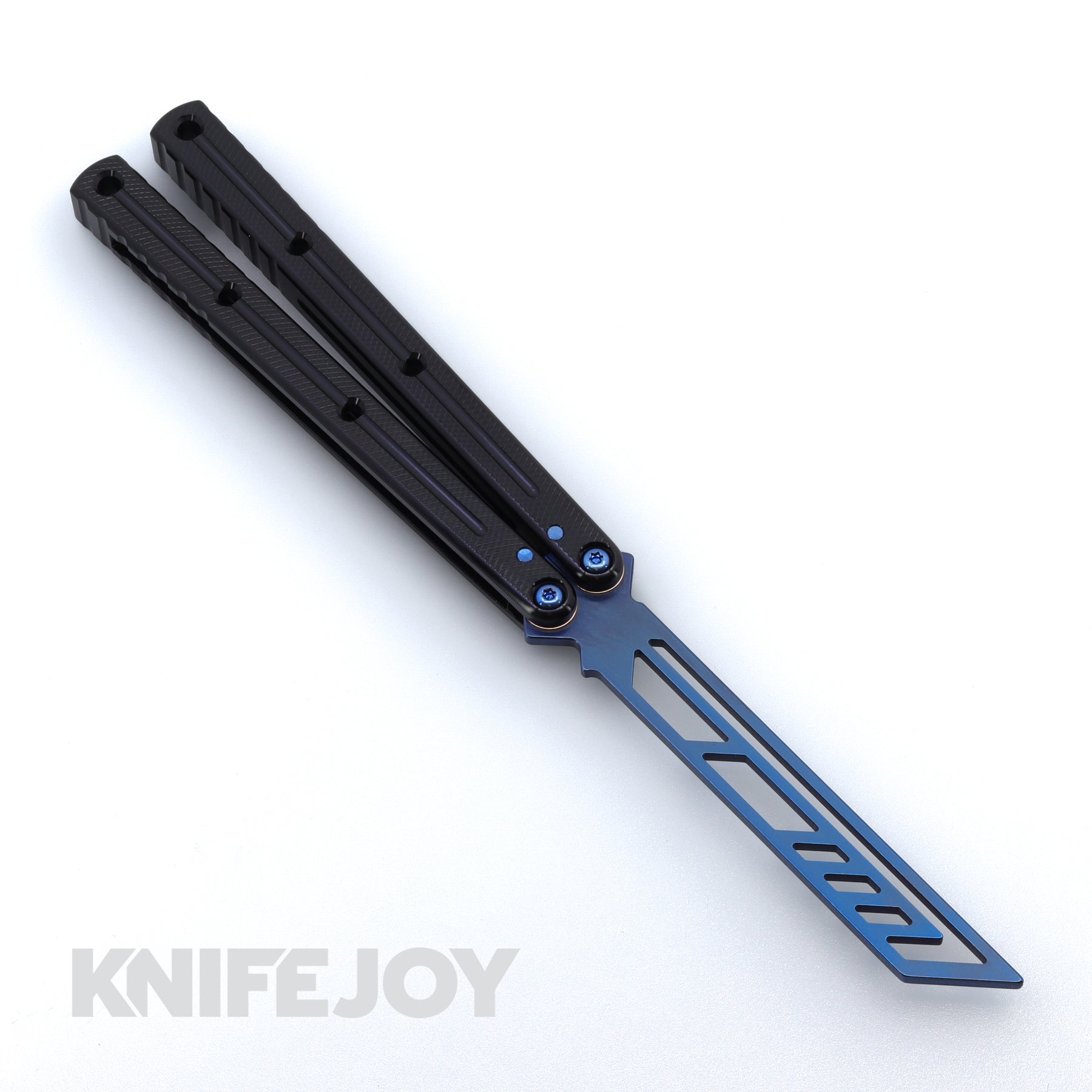 Unleash your inner butterfly knife artist with the Squid Industries Krake Raken Sapphire Trainer with Black Handle. This premium balisong trainer is designed for both beginners looking to learn the fundamentals and experienced flippers aiming to perfect their most intricate tricks. Crafted with precision and built for durability, the Krake Raken Trainer offers an exceptional flipping experience without the risk of a live blade.