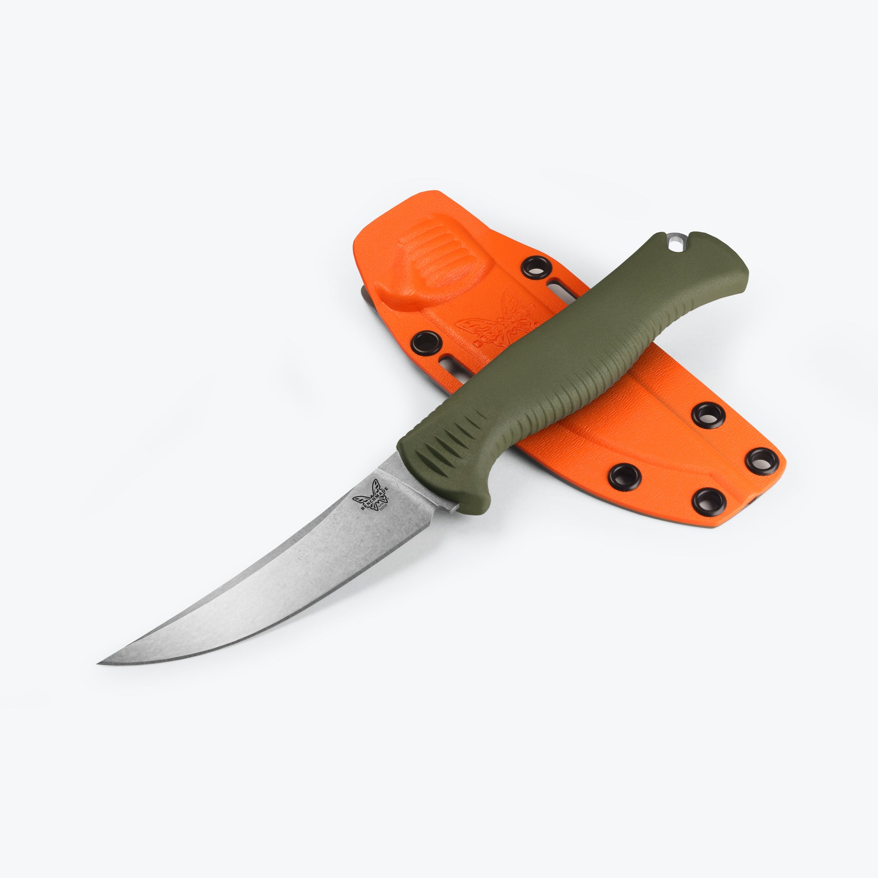 From field processing to food prep at your outdoor camp kitchen, the 15505 Meatcrafter® 4” gleans its comfortable handle ergonomics and hybrid fixed-blade profile and engineering from its full-size counterpart, yet offers a slightly smaller blade for even finer, more precise, and detailed work. The trailing-point CPM-154 premium stainless-steel blade with SelectEdge® is specifically designed for processing smaller animals and breasting out large game birds and poultry, the perfect amount of blade for delicate cuts around the breastbone. With a Dark Olive Santoprene® handle for a sure grip in wet environments, the Meatcrafter® 4” is a no-limits hunt tool for the skilled hunter.
