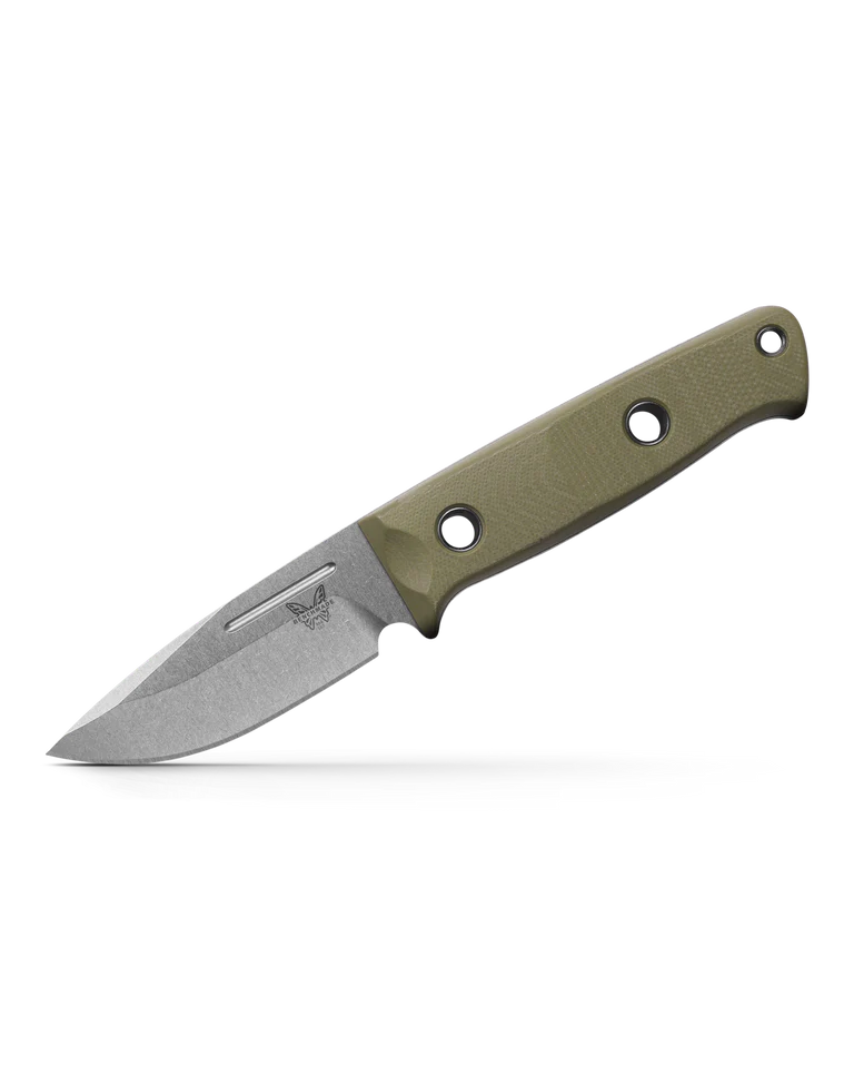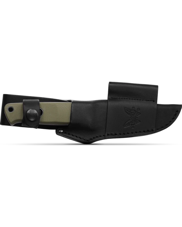 Wilderness survival can hinge on the tools you carry and the 165-1 Mini Bushcrafter is a fresh take on the classic outdoor bushcrafting knife, the most important tool in your kit. With a 3.38” premium stainless steel fixed blade and durable all-weather OD Green G10 handle scales with a Red G10 base layer, the 165-1 Mini Bushcrafter is purpose-built for all manner of heavy duty outdoor tasks including feather sticking, batoning, shelter building as well as food prep. Redesigned with updated blade geometry and handle ergonomics, keep it close by in its belt-carry leather sheath with ferro rod attachment