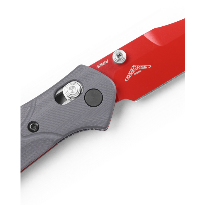 With an eye-catching pop of fluorescent red G10 contrast against the dark gray G10 handle, the 945RD-241 Mini Osborne is designed to stand out and be noticed. This versatile EDC folder will enliven every task with a CPM-S90V super premium stainless steel blade with a Red Cerakote finish for excellent wear resistance and edge retention. From outdoor recreation and professional readiness to daily tasks and chores, add some color to your world with the unique 945RD-241 Mini Osborne.