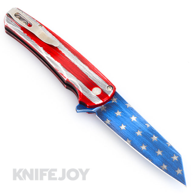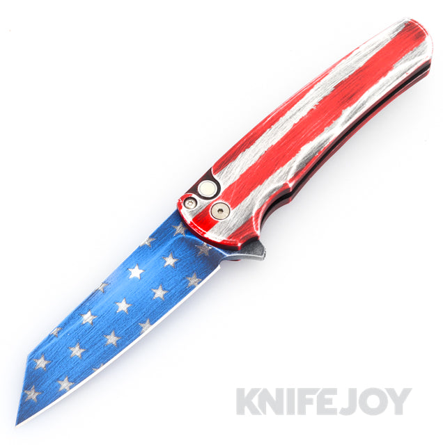 Fly the flag everywhere you go with this new design from Pro-Tech. This patriotic take on the Protech Malibu with American Flag Theme Cerakoted Blade and Handle version of a classic we've all come to know and love.