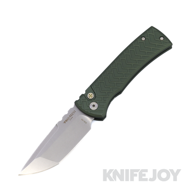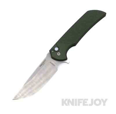 Chaves Knives x Pro-Tech BSW.25.Redencion.1 Redencion Auto Stonewash S35VN Blade with Mosaic Pin Button / Green TREAD Textured Handle / Stonewash Milled Skull Clip