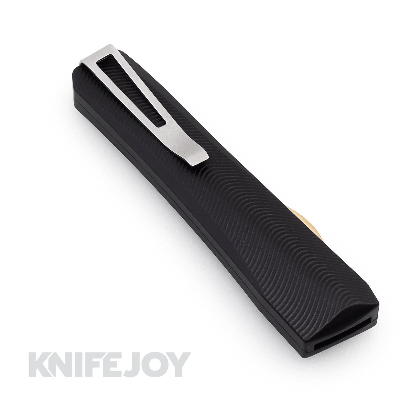 The 0331 Pulsar OTF, the most popular pattern of their 0331 line, has a chassis milled from 6061-T6 Aluminum featuring 3D milling along the front and back faces. This build features black anodized handle with no visible assembly screws, bronze hardware and a stainless pocket clip.