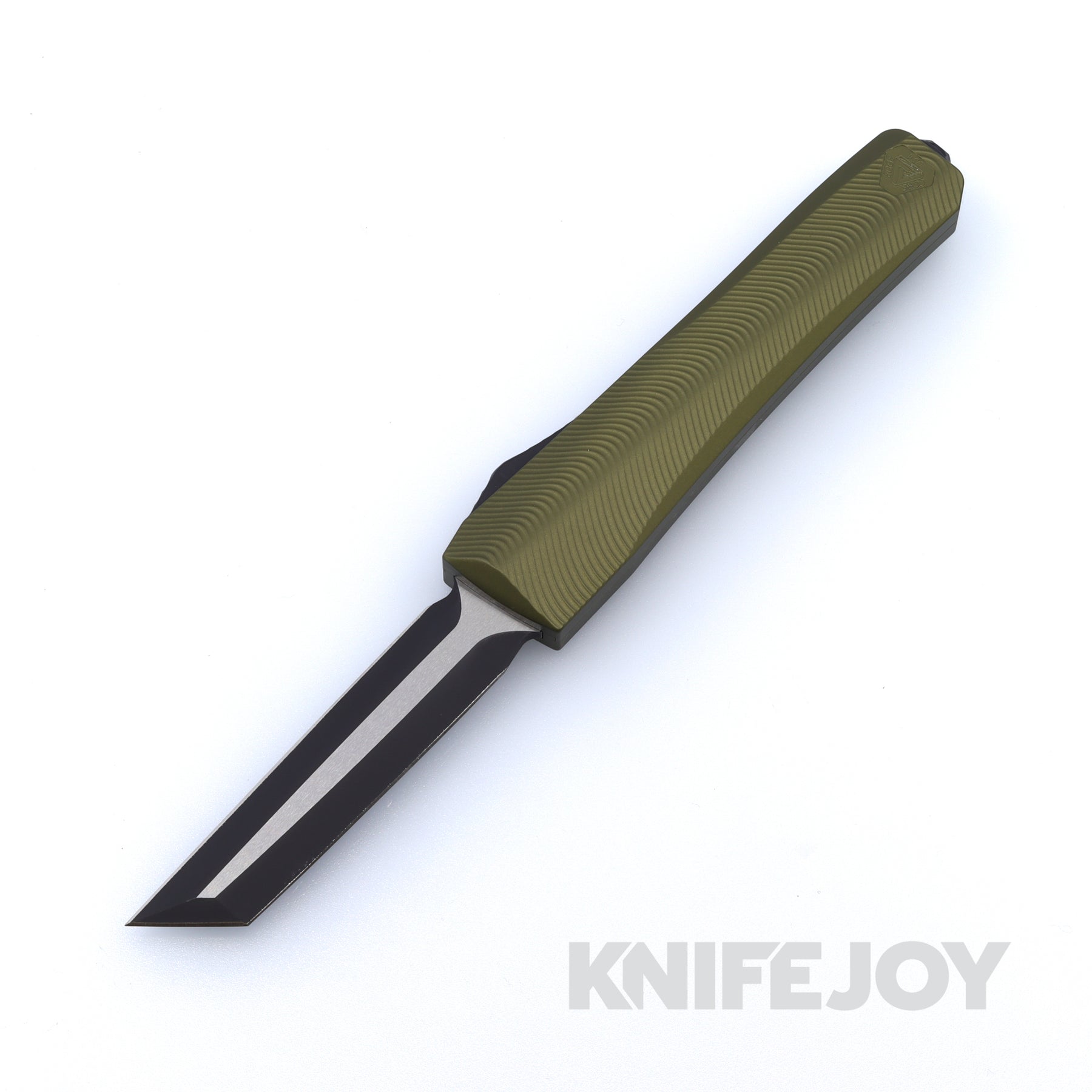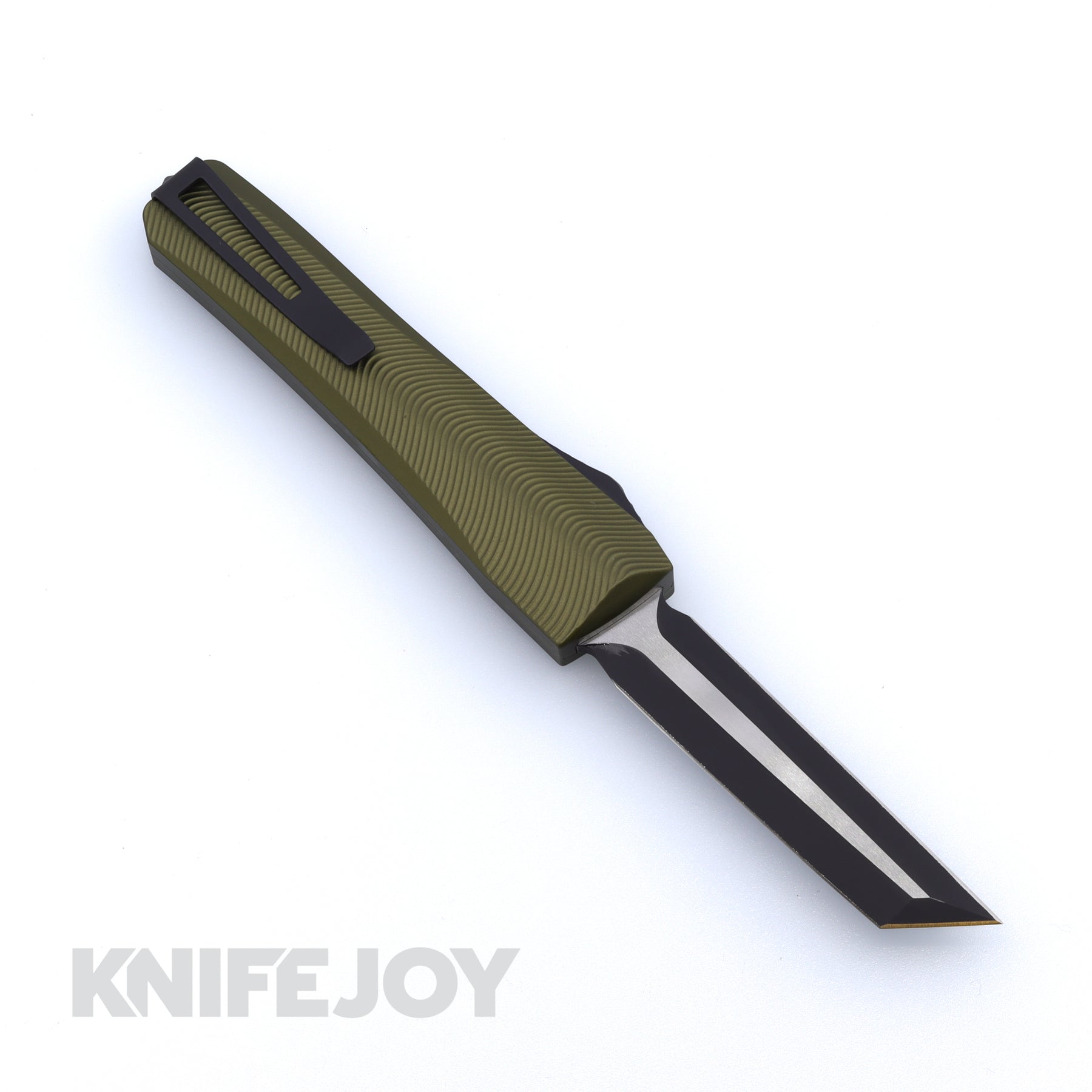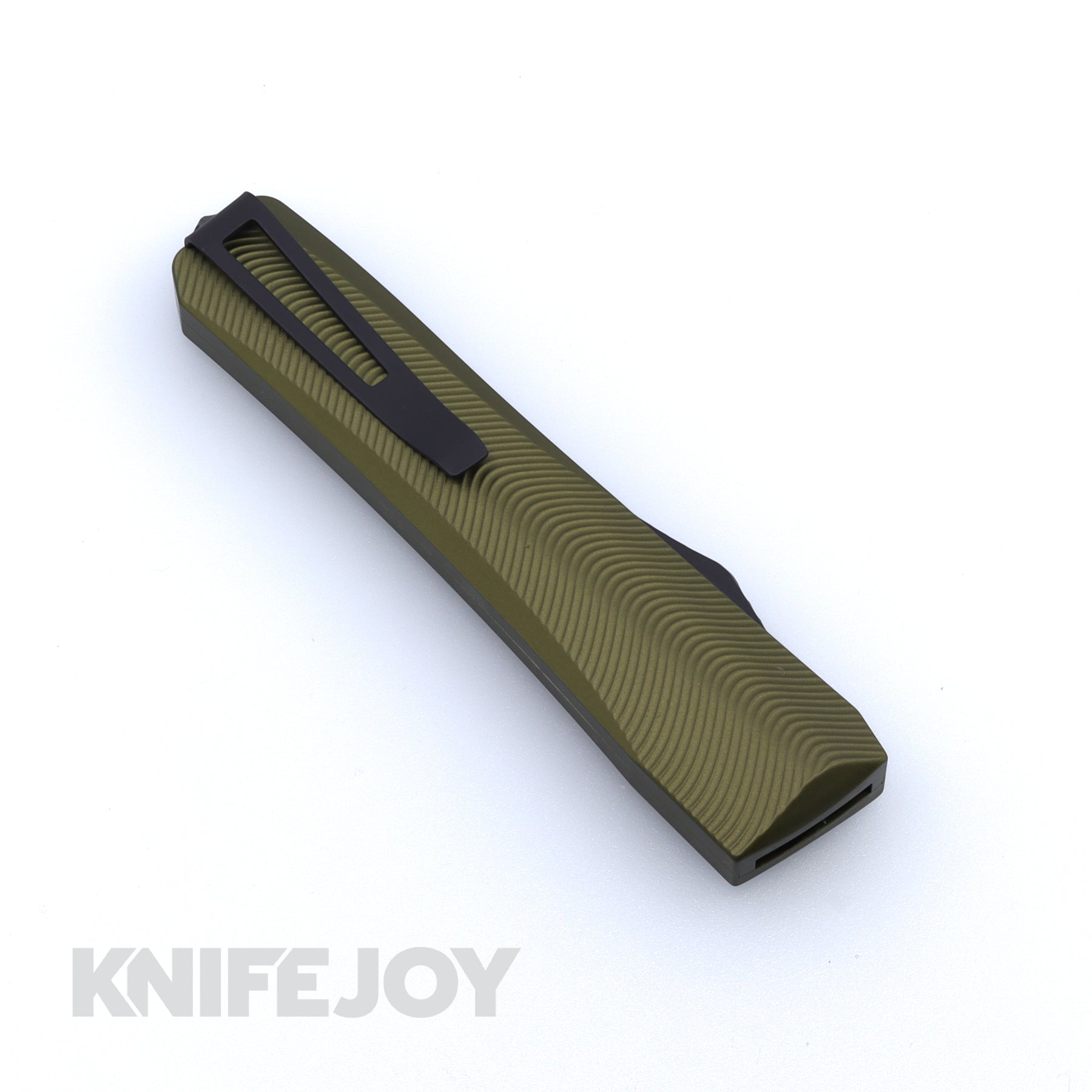 The 0331 Pulsar OTF, the most popular pattern of their 0331 line, has a chassis milled from 6061-T6 Aluminum featuring 3D milling along the front and back faces. This build features a two-tone Magnacut blade, OD green anodized handle with no visible assembly screws, stainless hardware and a stainless pocket clip.