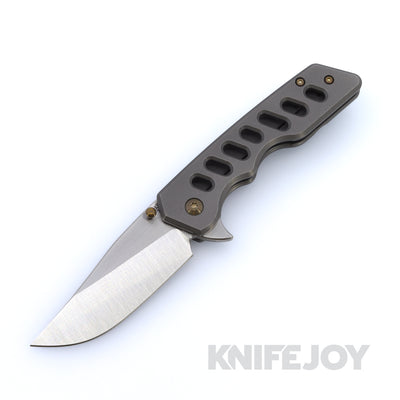 Jason Clark Custom Knives Model #48 Linerlock Flipper CPM 154 Blade with Titanium Milled Dimple Texture Handles