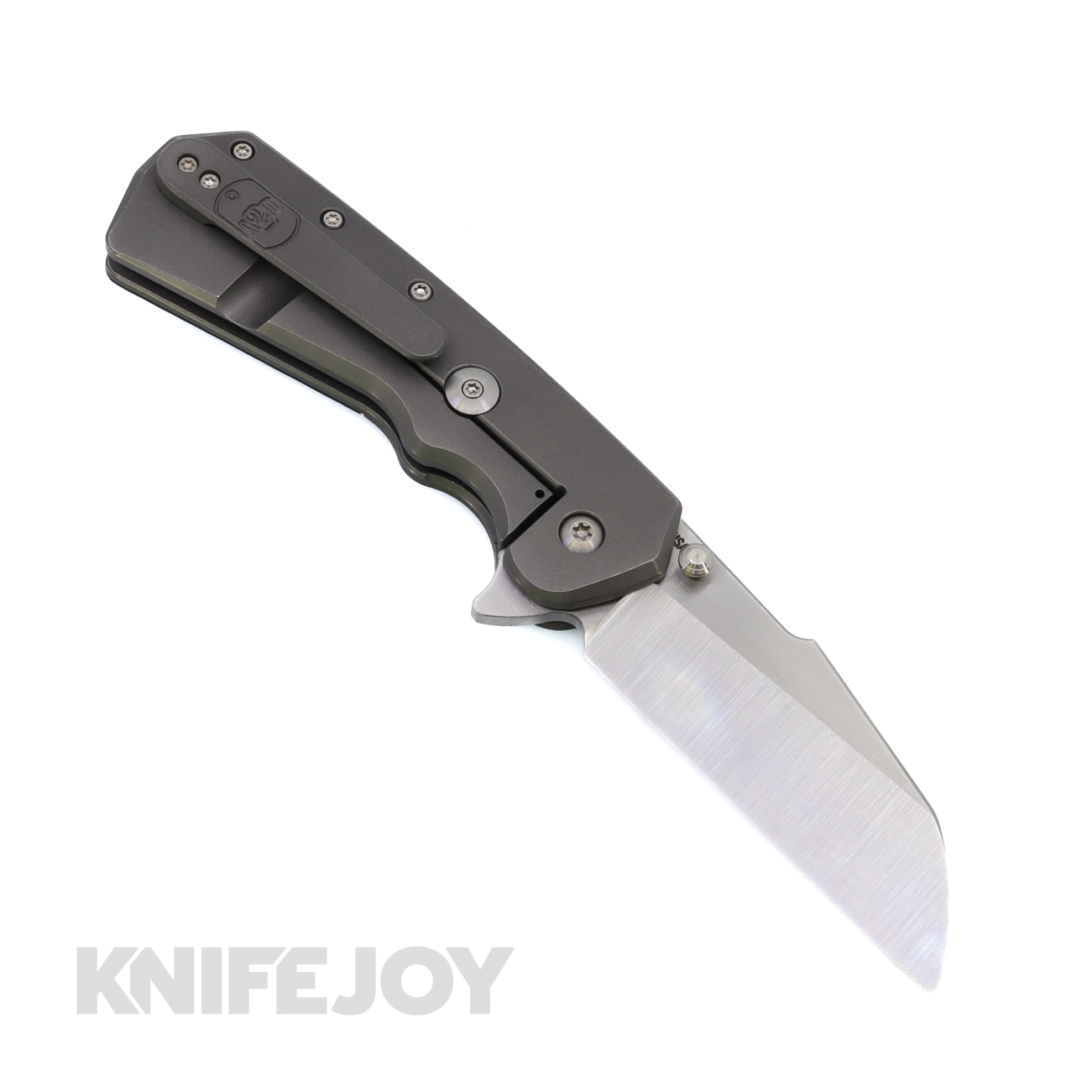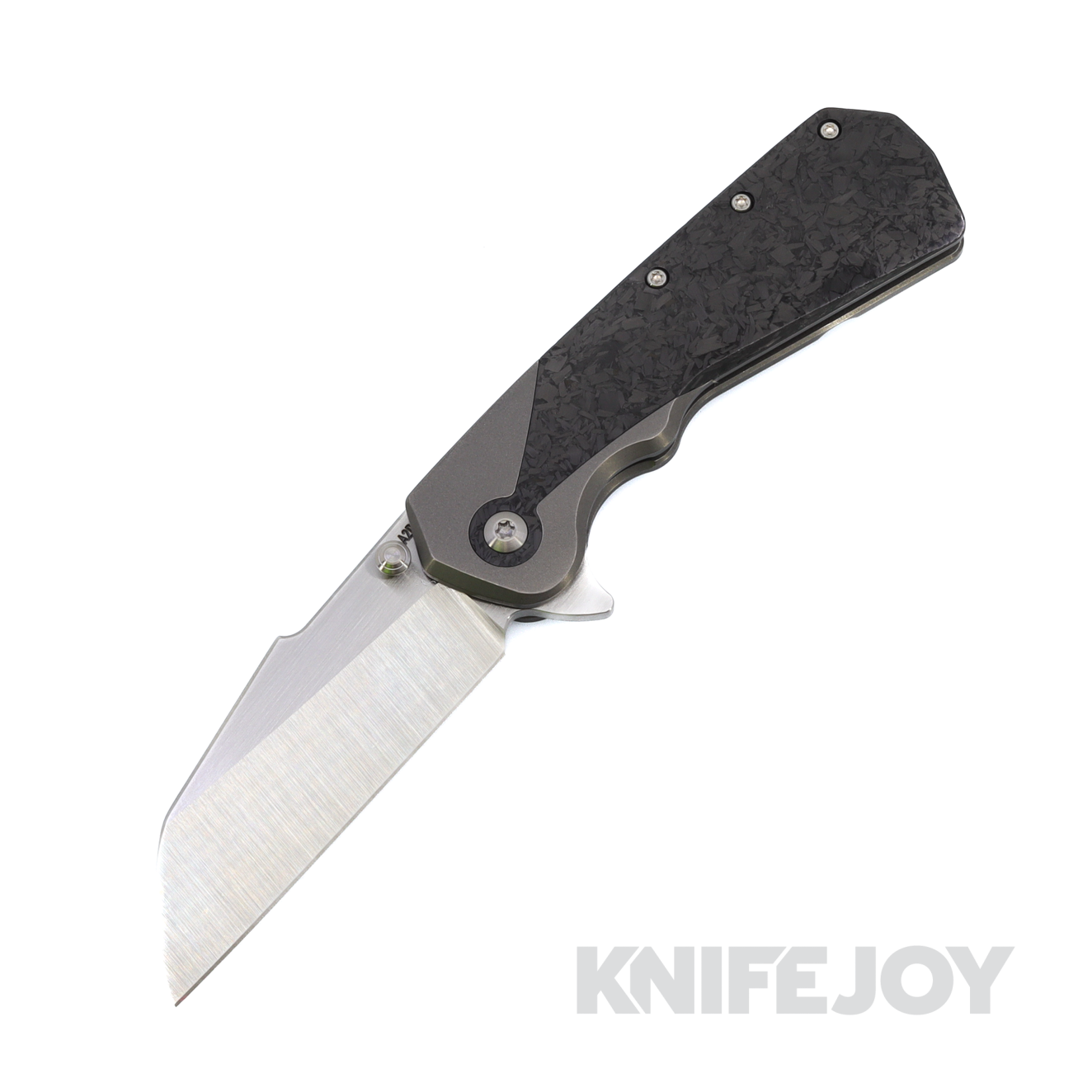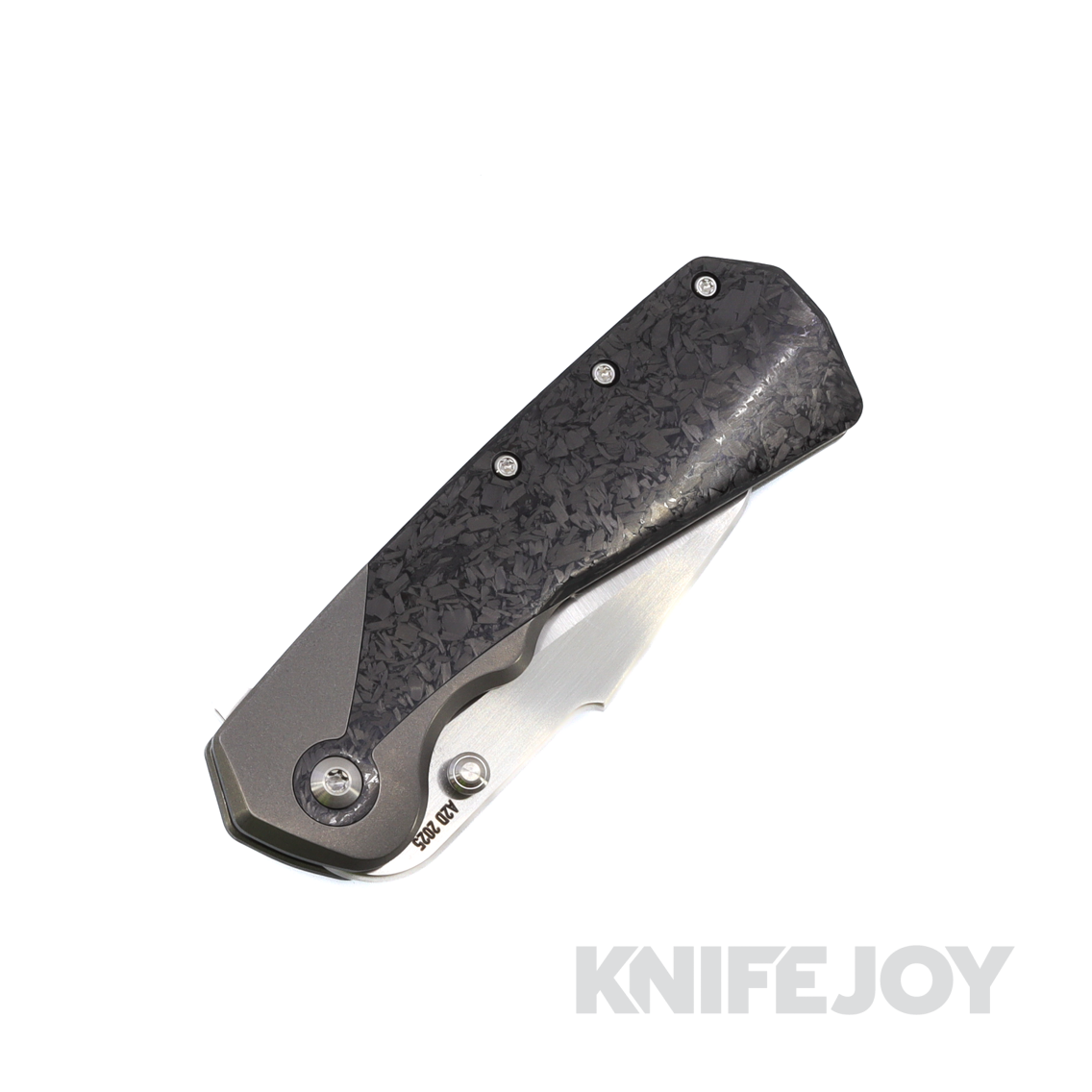 Attn2Detail Mercantile Knives Custom Delta Satin 20CV Sheepsfoot Rising Grind Blade with Carbon Fiber Keyhole Scales and Titanium Handles