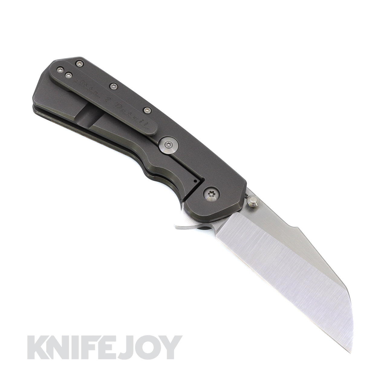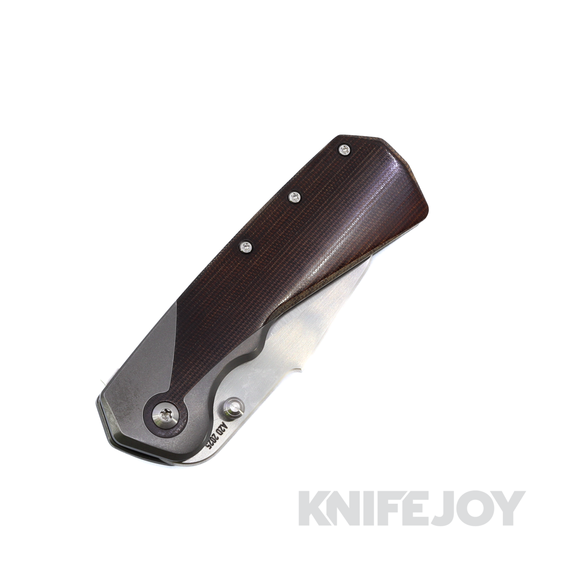 The DELTA Framelock Flipper rides on Ceramic Bearings.Features a Hand Ground Harpoon/Sheepsfoot Shape With Rising Grind .150" thick Blade in 20CV Stainless Steel with a Satin Finish.The Micarta Show Side Inlay is machined into the Ti Scale with a Dark Stonewash Finish and built with all Ti Hardware and Logo Pocket Clip.