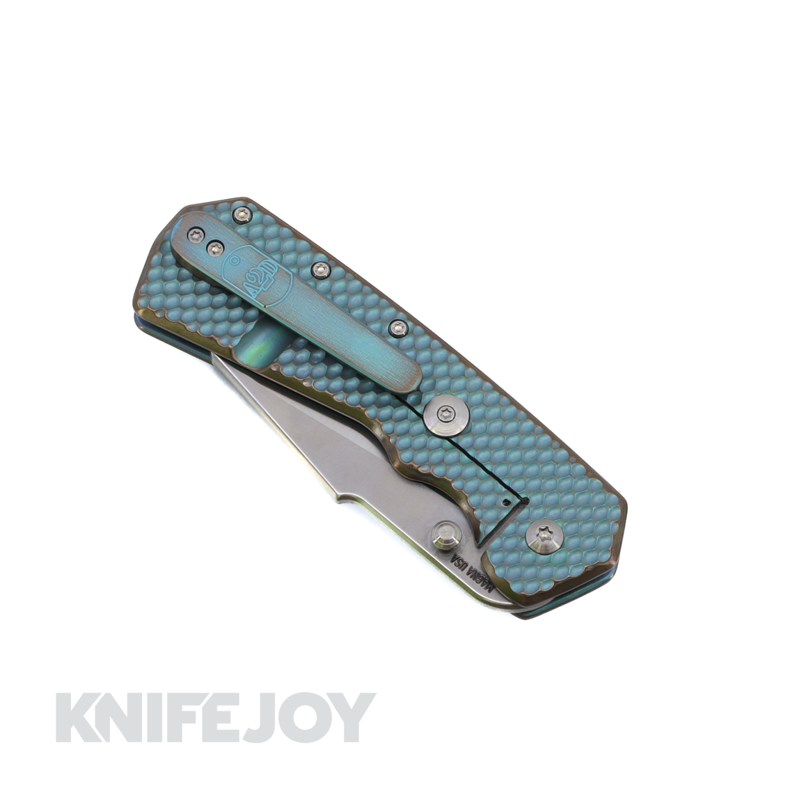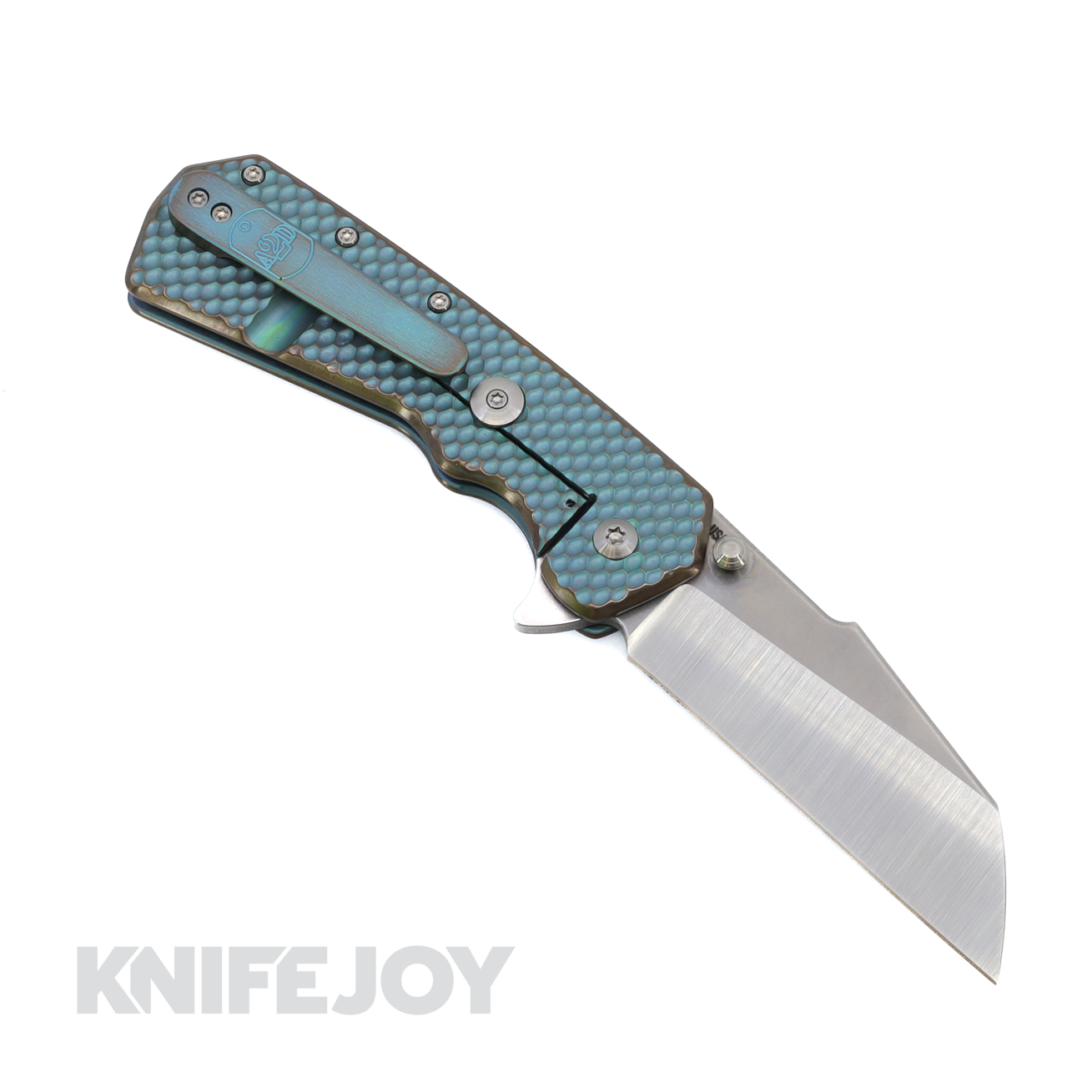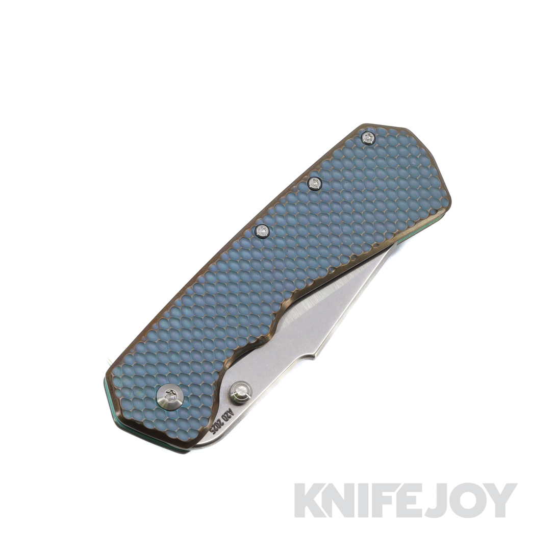 The DELTA Framelock Flipper rides on Ceramic Bearings.Features a Hand Ground Harpoon/Sheepsfoot Shape With Rising Grind .150" thick Blade in Magnacut Steel with a Satin Finish.The Double Divot Ti Scales are Bronze Anodized with a Shipwreck Stonewash Finish and built with all Ti Hardware and Logo Pocket Clip.