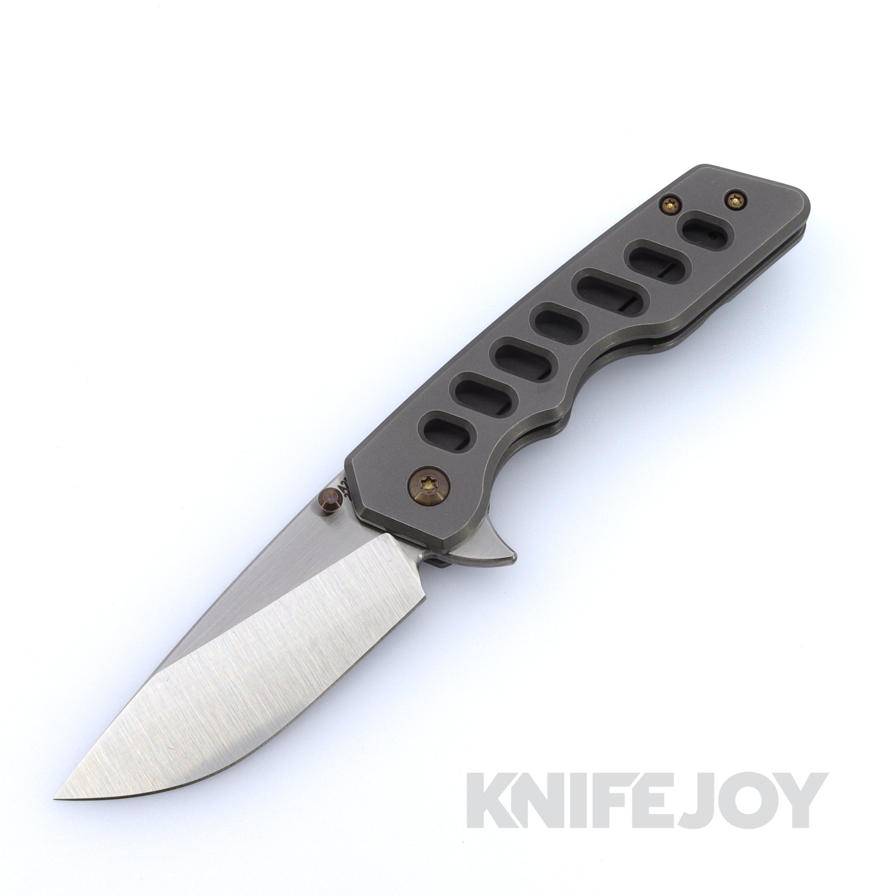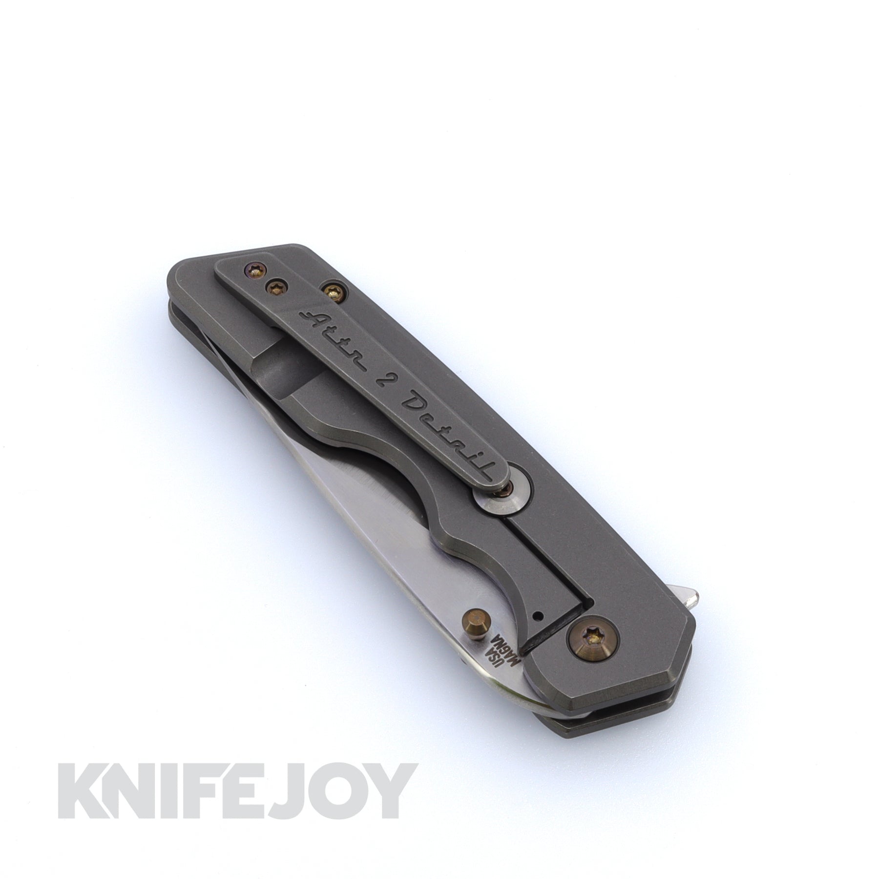Attn2Detail Mercantile Knives Custom Mark 3 Medium Satin Magnacut Drop Point Blade with New for BLADE Show Titanium Speedhole Handles