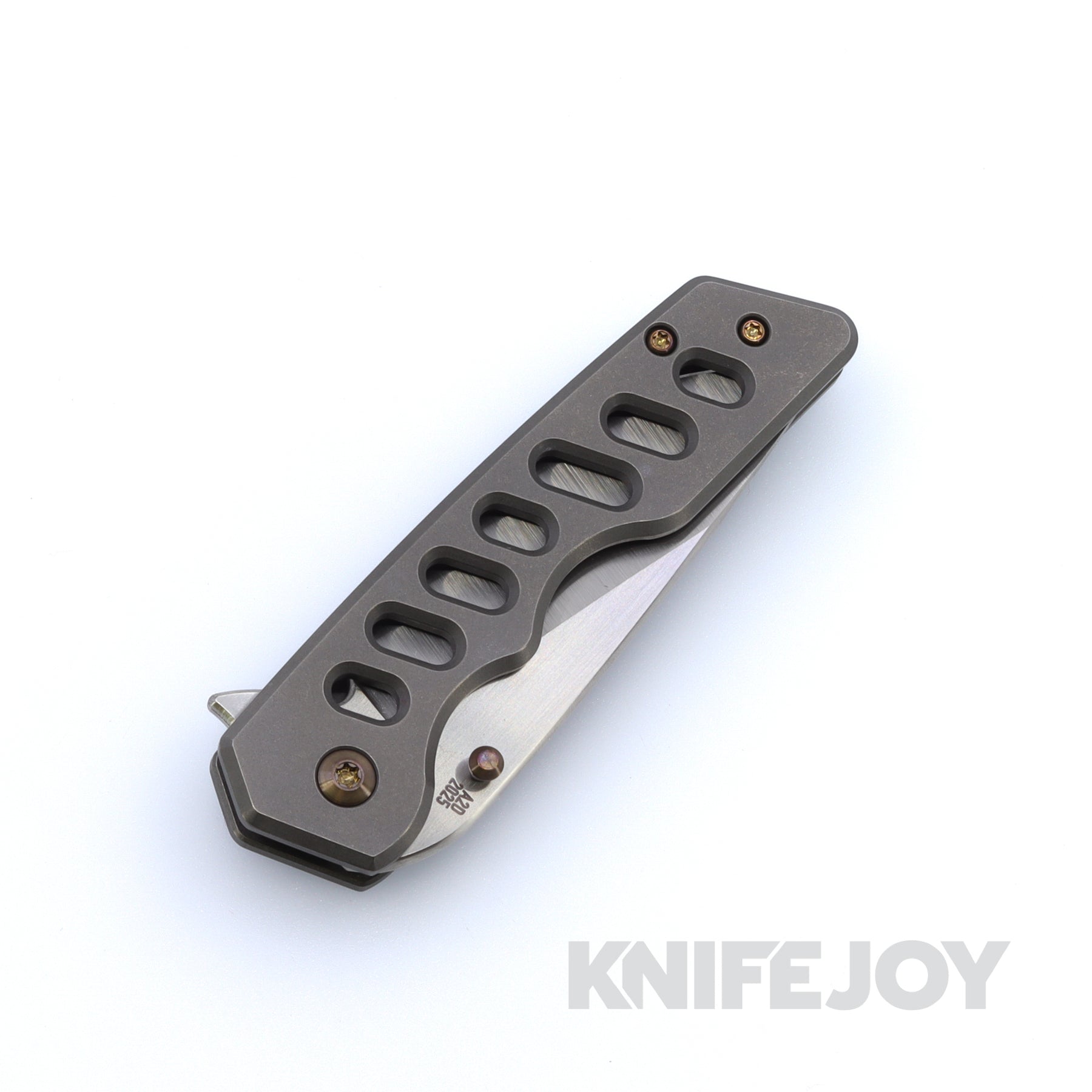The next evolution from the A2D Custom Shop, this Medium Mark 3 features a hand-ground blade and bevels, a fully machined titanium clip, and dual opening options with bronze-finished hardware. The speedholes are precisely milled into the titanium handles for a light, grippy feel.