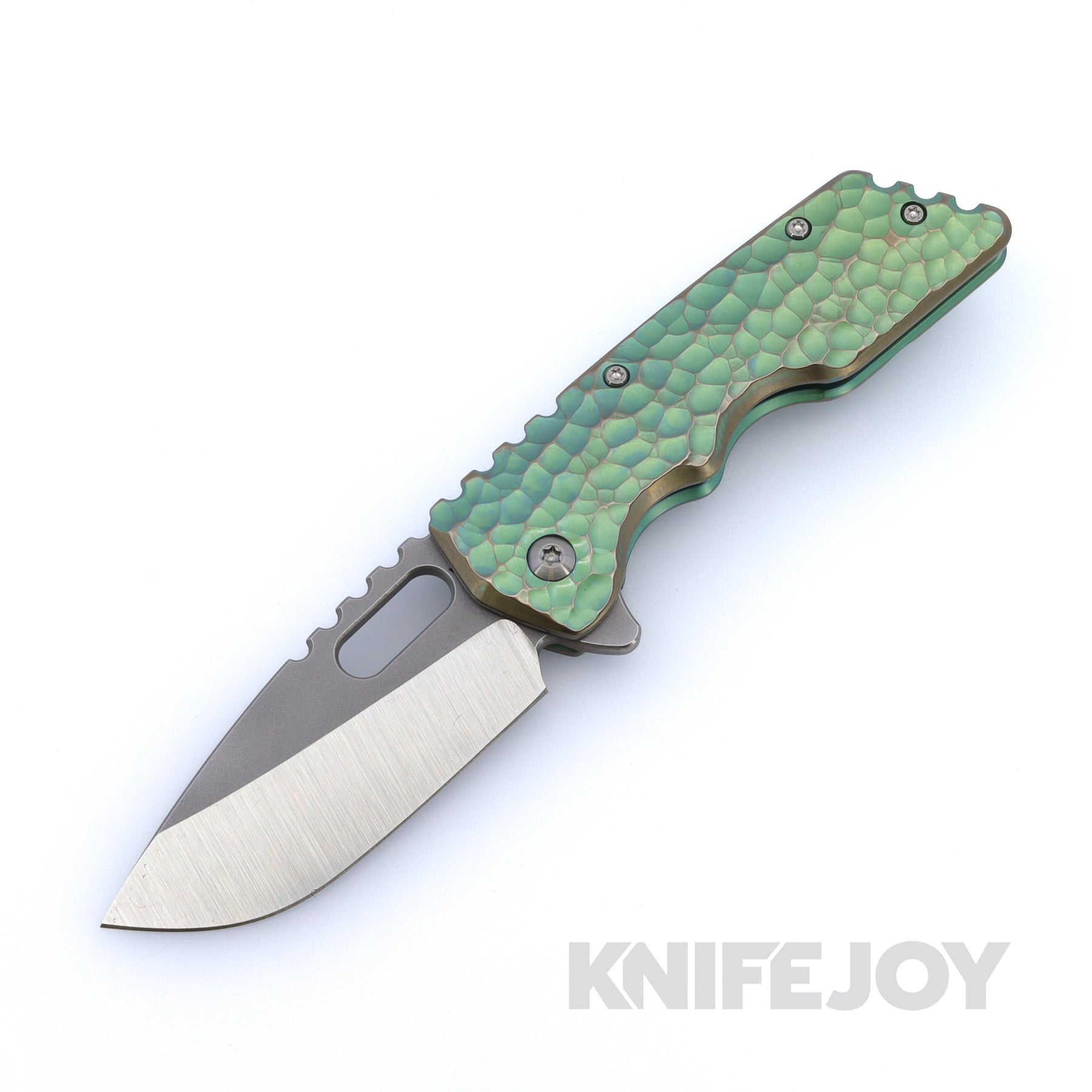 The Titanium handles are in a Fully Textured Pattern and Ship Wreck Finish with Titanium Hardware and a Machined Ti Pocket Clip. It comes in a Logo Zippered case with a product spec Dogtag.