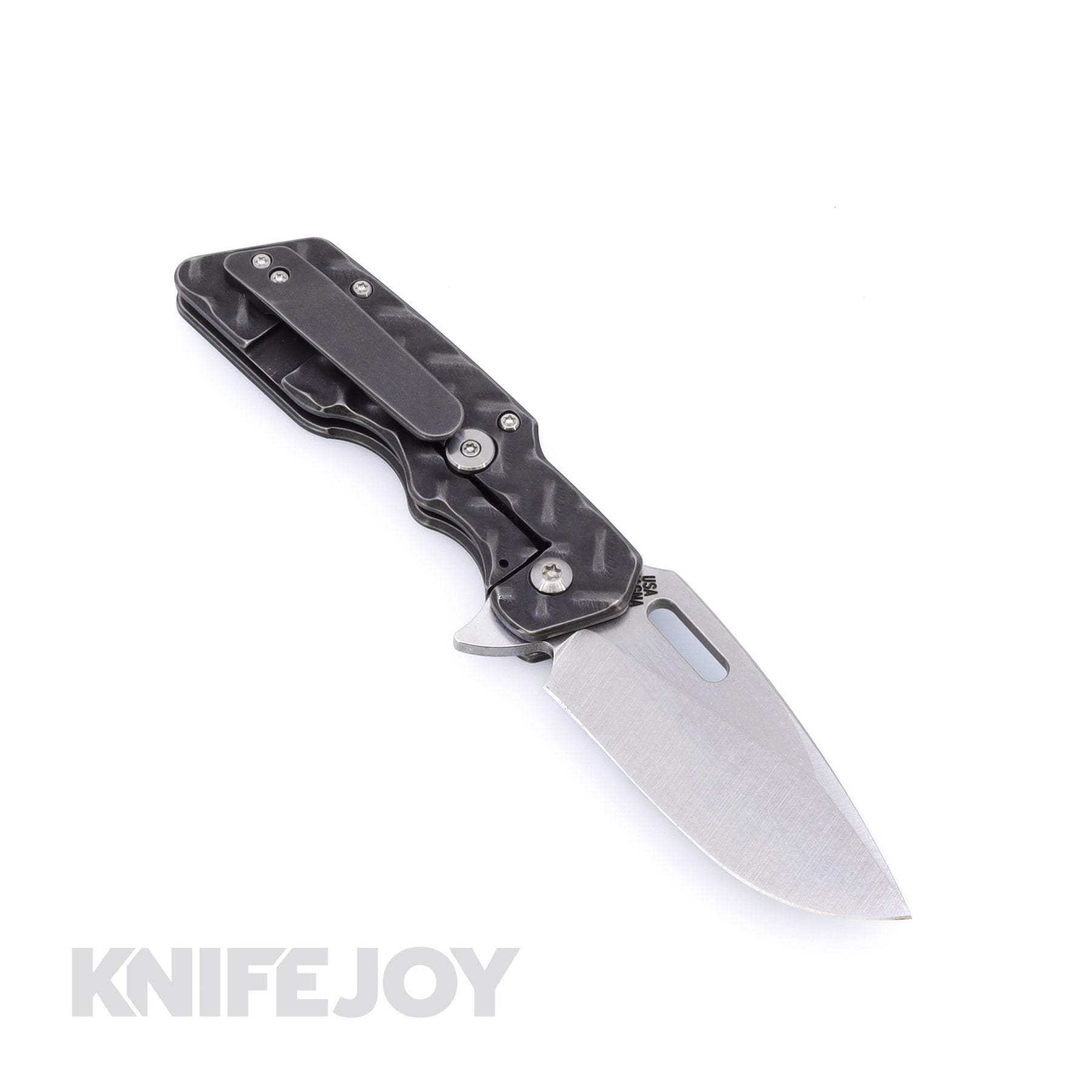 Built on a framelock platform, it delivers smooth action and a solid, secure feel. The blackwash Treadplate machined titanium handles provide strength and depth texture with a machined pocket clip.