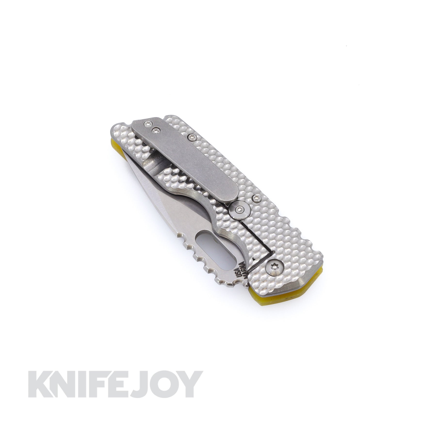 Built on a framelock platform, it offers smooth action and a secure feel. The contoured double divot G10 and titanium handle construction enhances grip and strength, while a machined pocket clip ensures reliable carry.