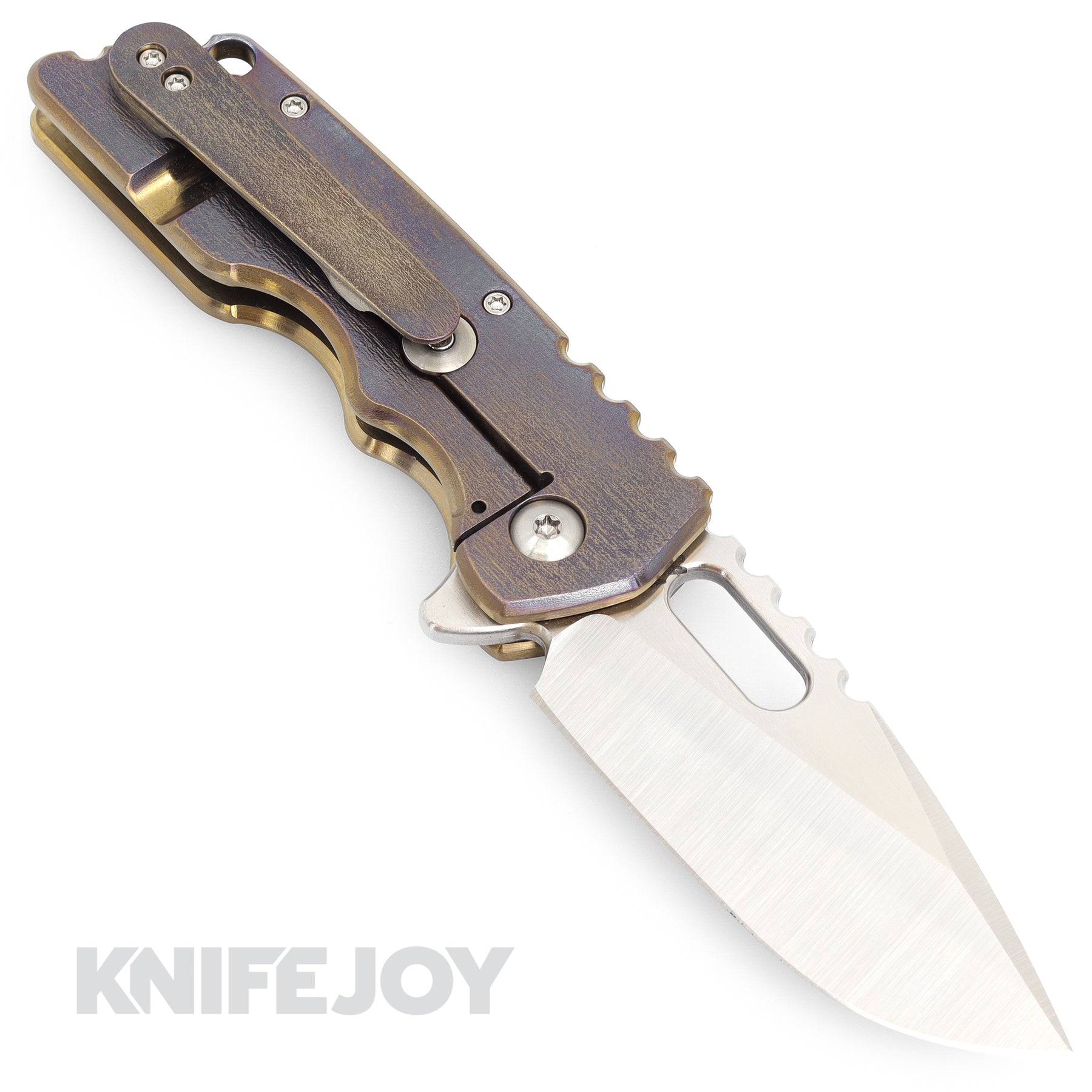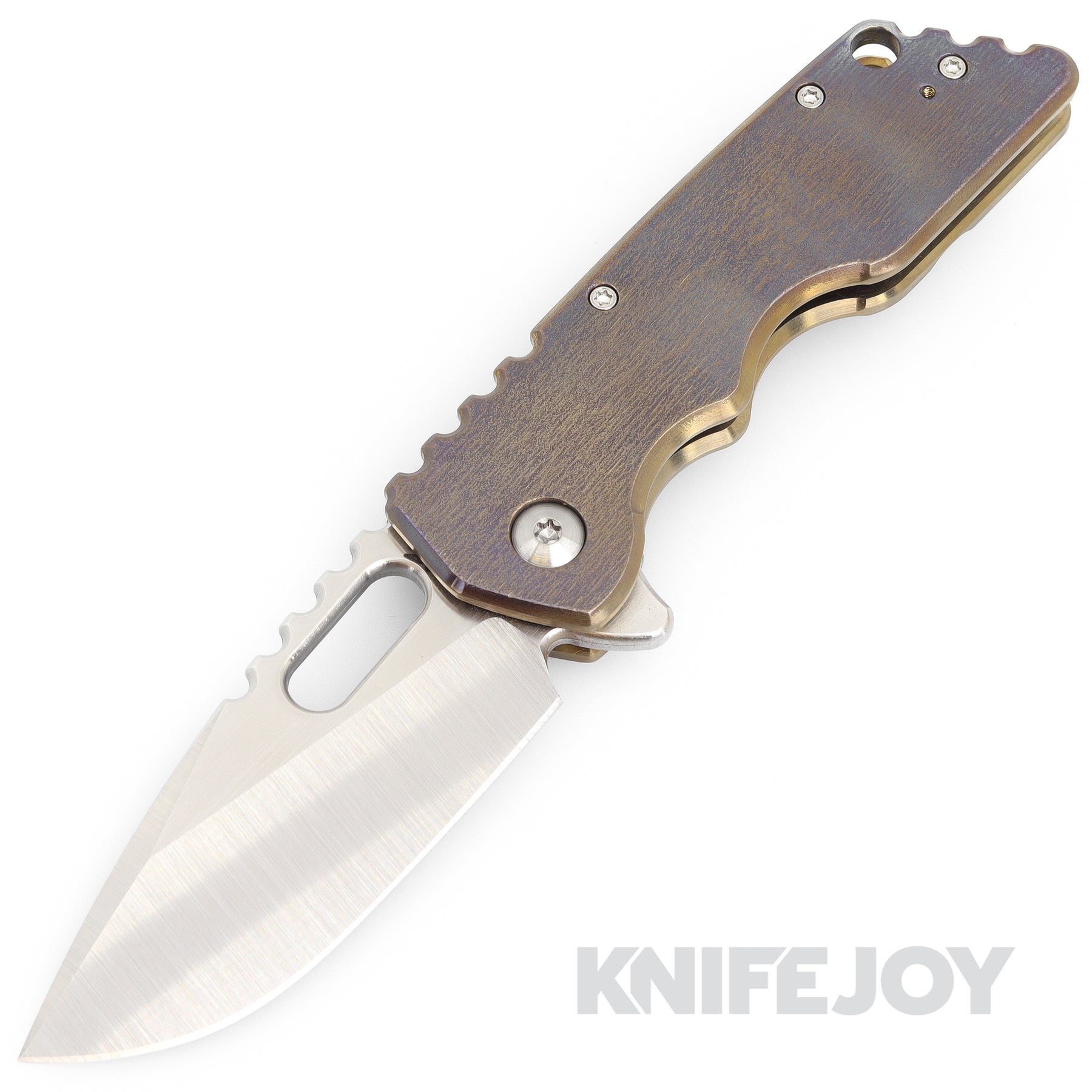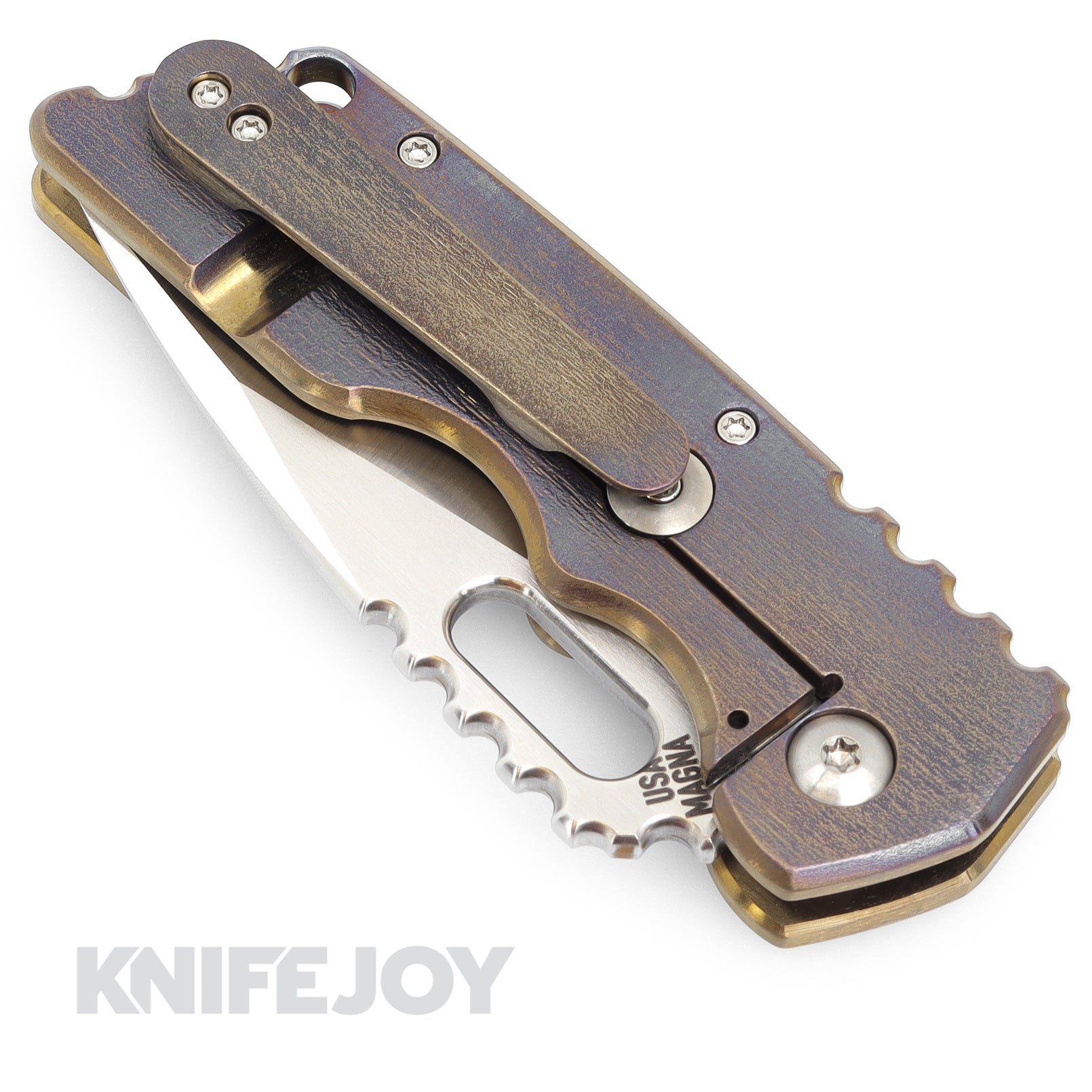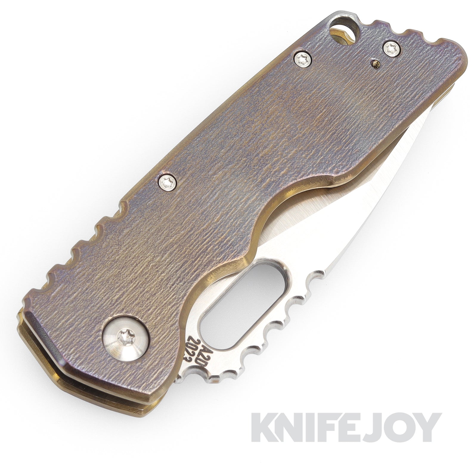 Attn2Detail Mercantile Knives Medium MK2 Satin Drop Point/Rising Magnacut Blade with Flamed Anodized Bark Titanium Handles