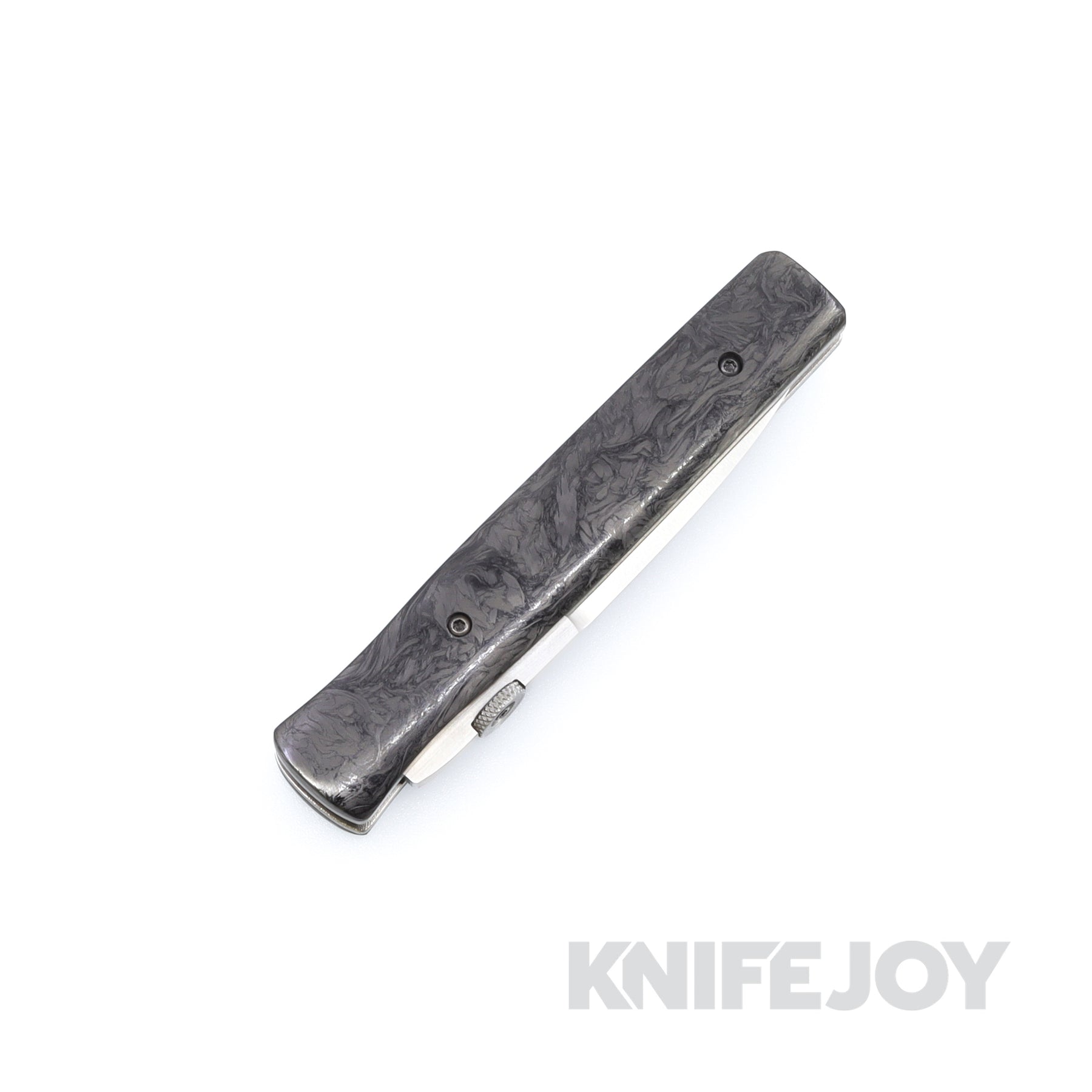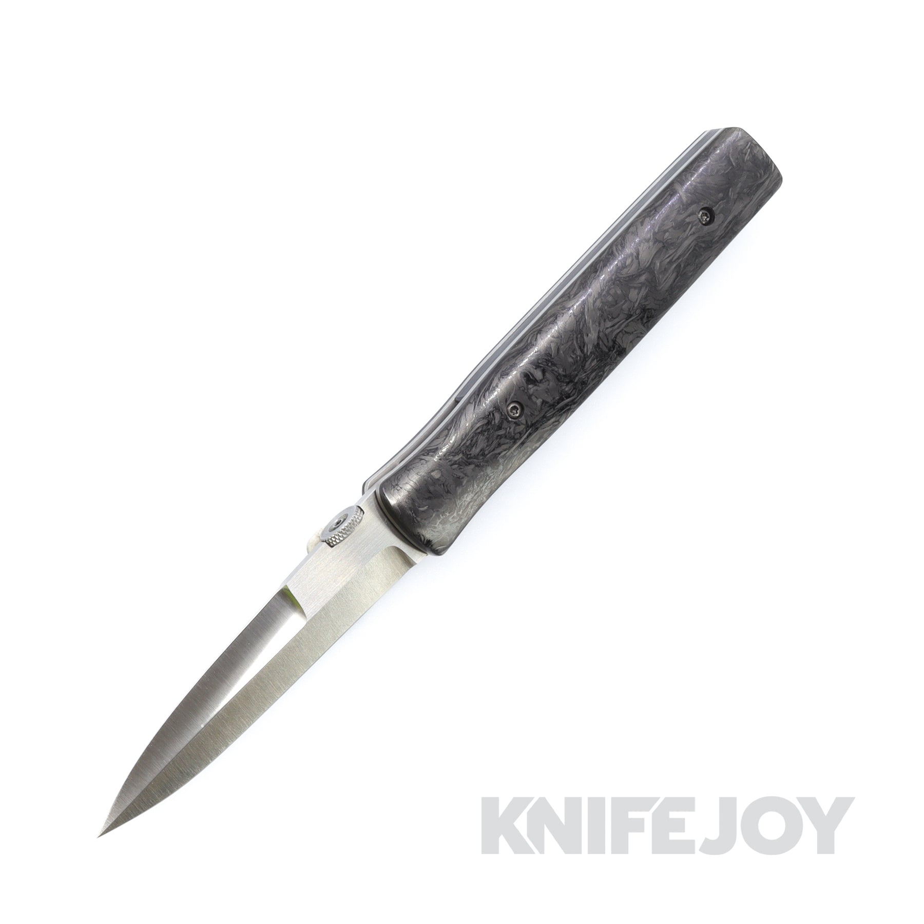 Chuck Gedraitis Custom Knives Ice Pick L2 Folding Knife Nitro-V Spearpoint Blade and Marbled Black Carbon Fiber Scales with Reactive Green Glow / Ti Liners and Hardware