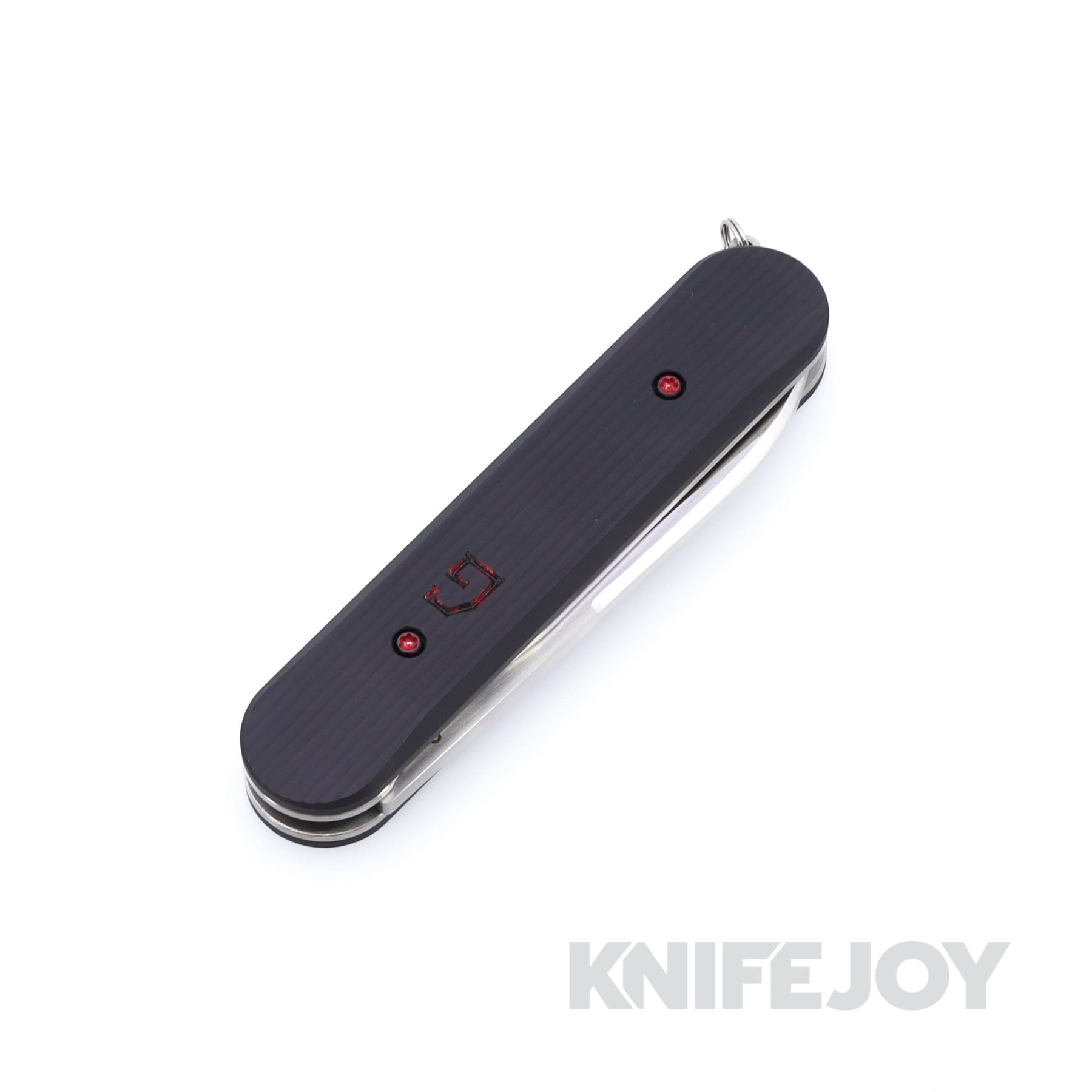 This handmade Switch Army Automatic is designed to resemble a traditional Swiss Army knife and includes the signature toothpick and tweezer combo. It features a scale release mechanism that opens the side blade, along with stylish machined aluminum scales on titanium liners. Handmade in the USA.