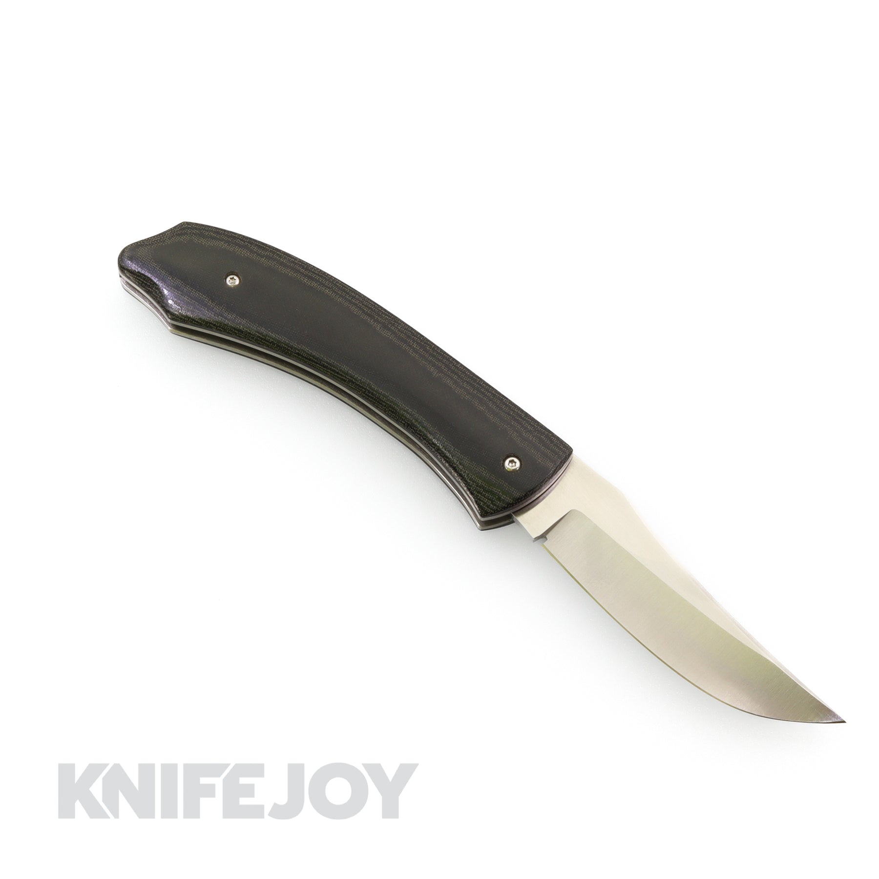 This handmade folder from Chuck Gedraitis is his proof of concept for this new configuration. Previously offered in other variations, this new slipjoint features a titanium spring with a hardened stainless insert that the blade rides on. With Micarta scales and a sleek Persian-style hand-ground blade, this Toucan is a great example of Mr. Gedraitis’s craftsmanship.