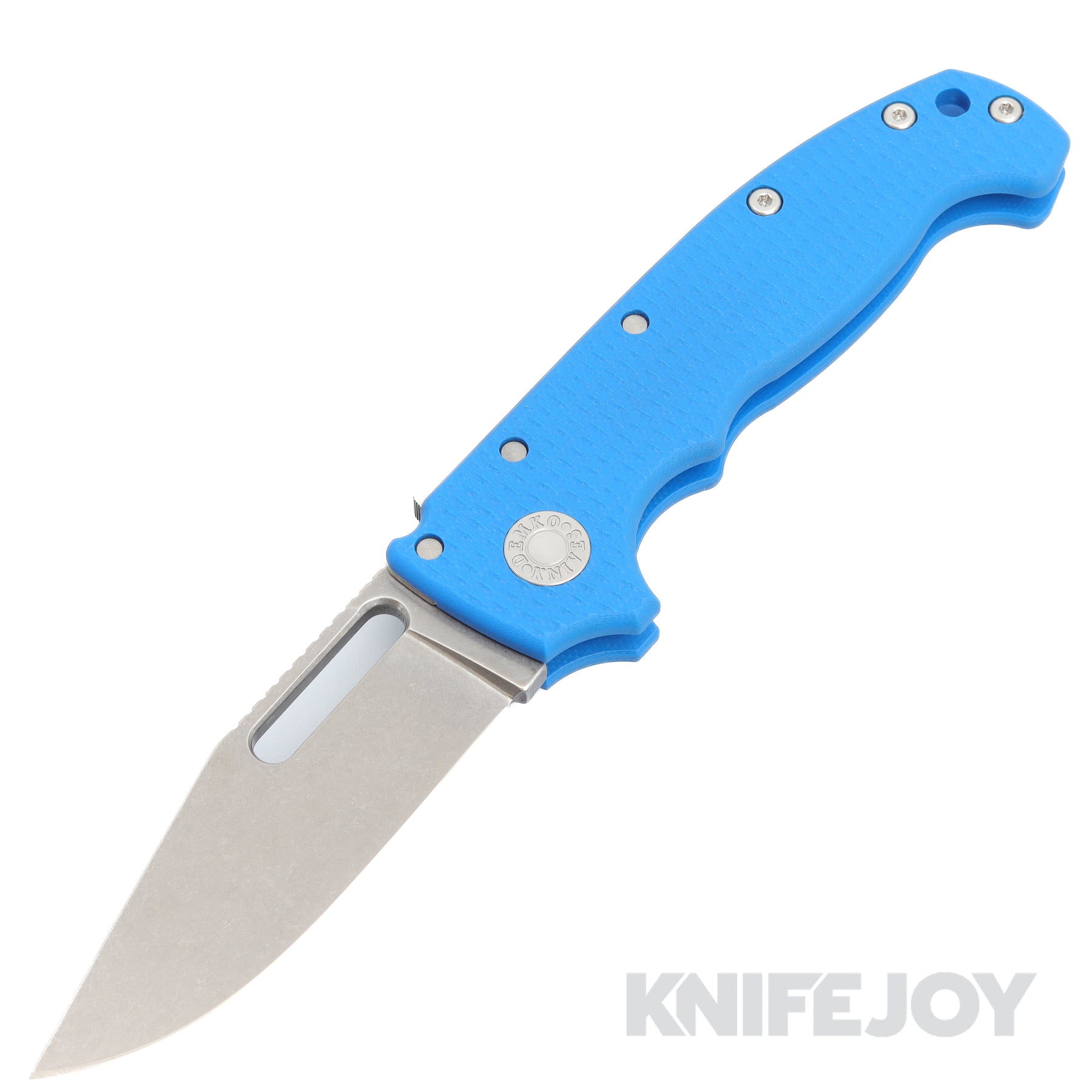 Demko Knives (FFG) AD20 Full Flat Grind 3V Clip Point Blade with Blue #1 G10 Handles