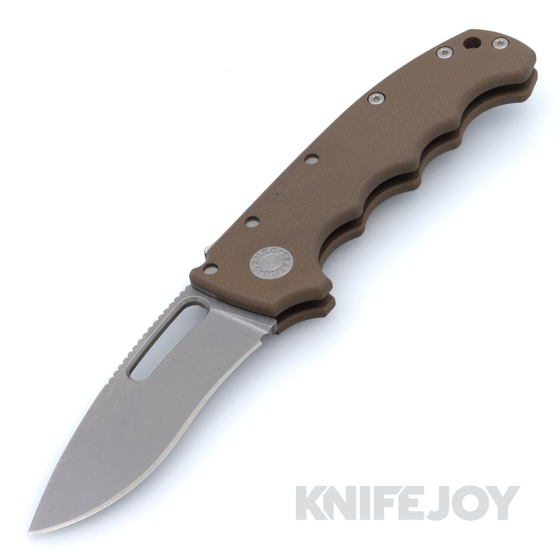 Demko's new Kopis Blade Grind offers a slight recurve cutting edge in several new handle configurations.  This version is the new Finger Groove pattern in an all G10 Handle and Peel-Ply Surface.
