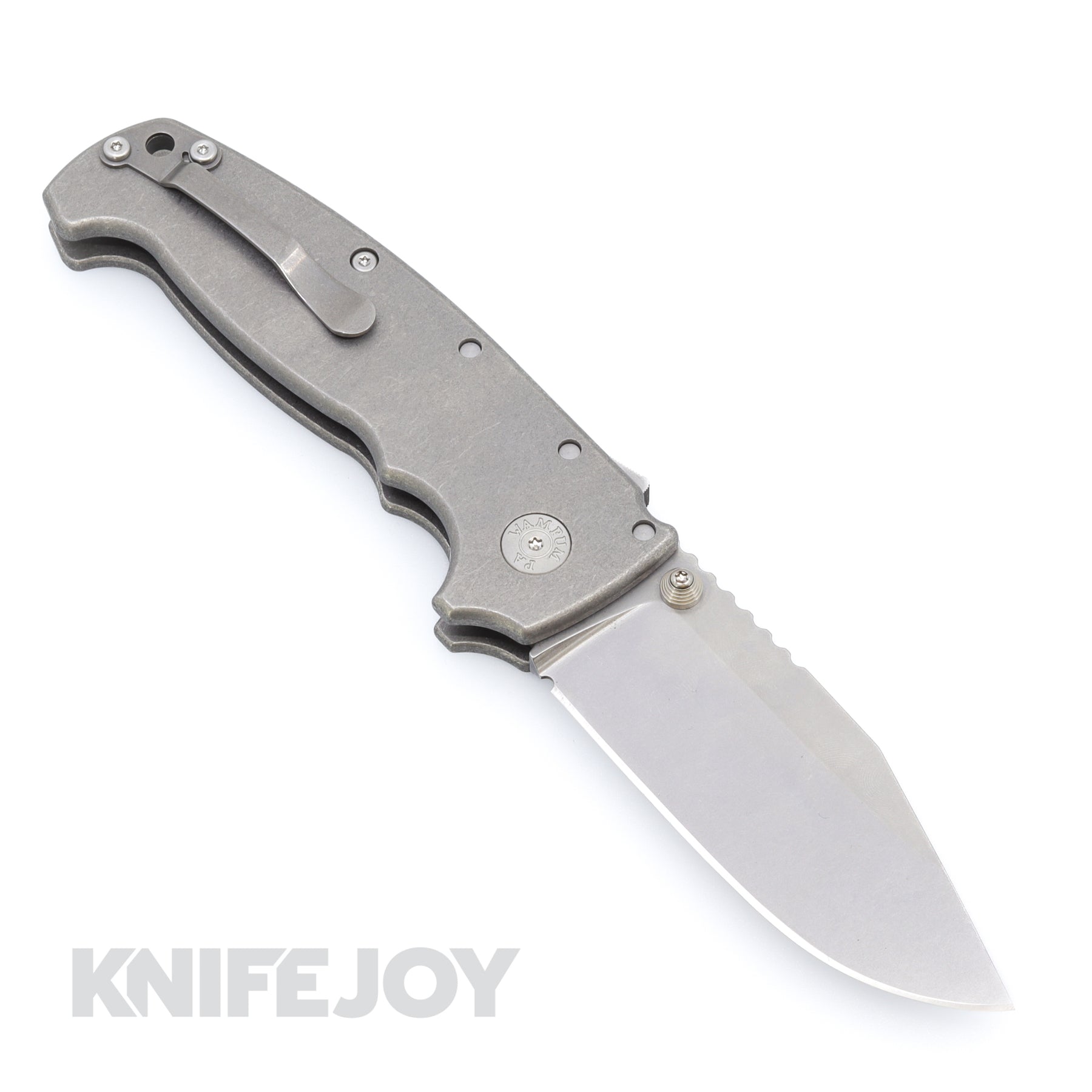 The Demko MGAD20 XXX with Smooth Titanium handles and a 3V Drop Point Stud Only Blade is a highly sought-after folding knife, renowned for its robust construction, innovative locking mechanism, and premium materials. Designed by the esteemed Andrew Demko, this knife embodies both heavy-duty functionality and exceptional craftsmanship.