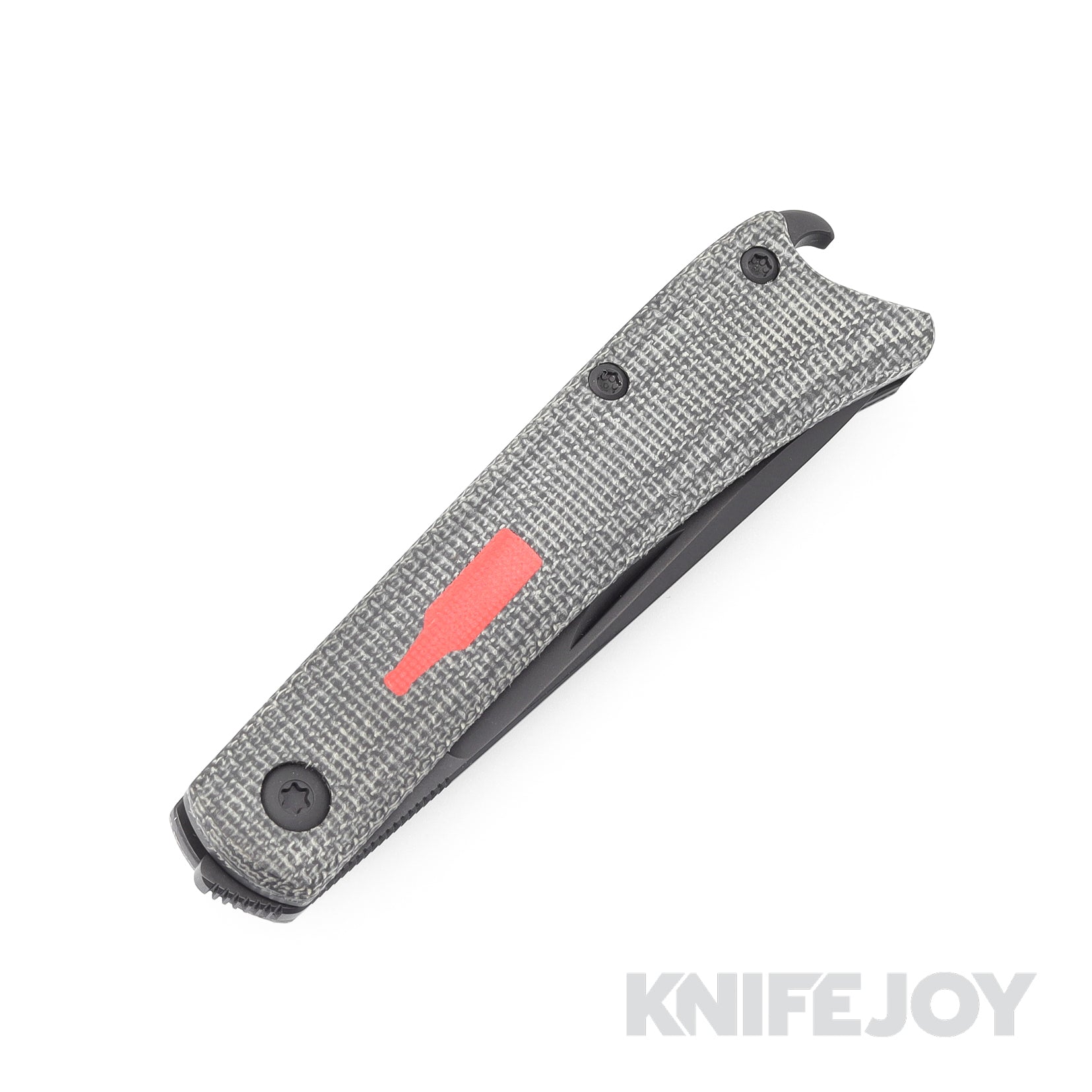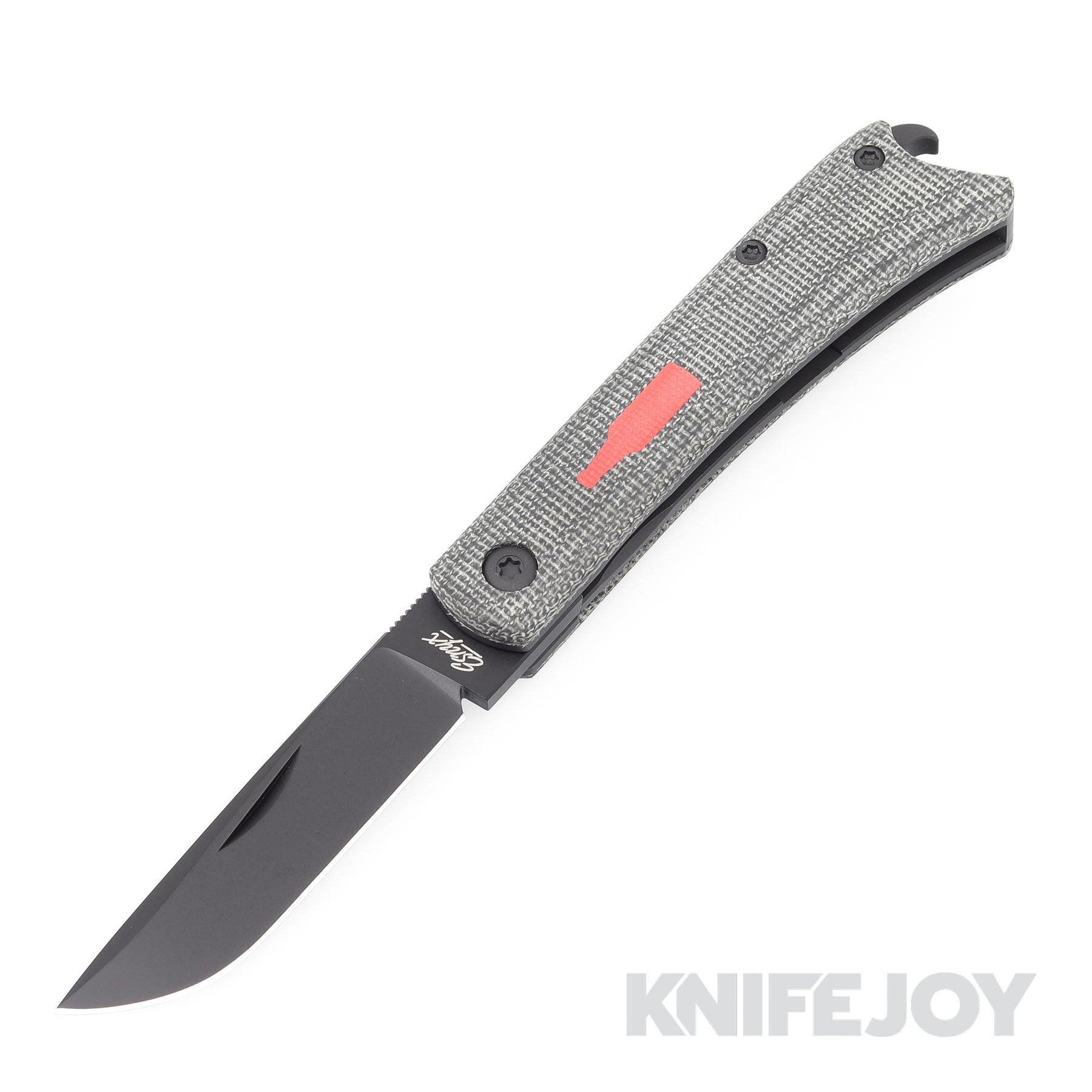 Esnyx Silver Line Beer Buster Jr. Front Flipper M390 Black PVD Finish Blade with Black PVD Titanium/ Black Micarta Handles/ Red G10 Bottle with PVD Clip