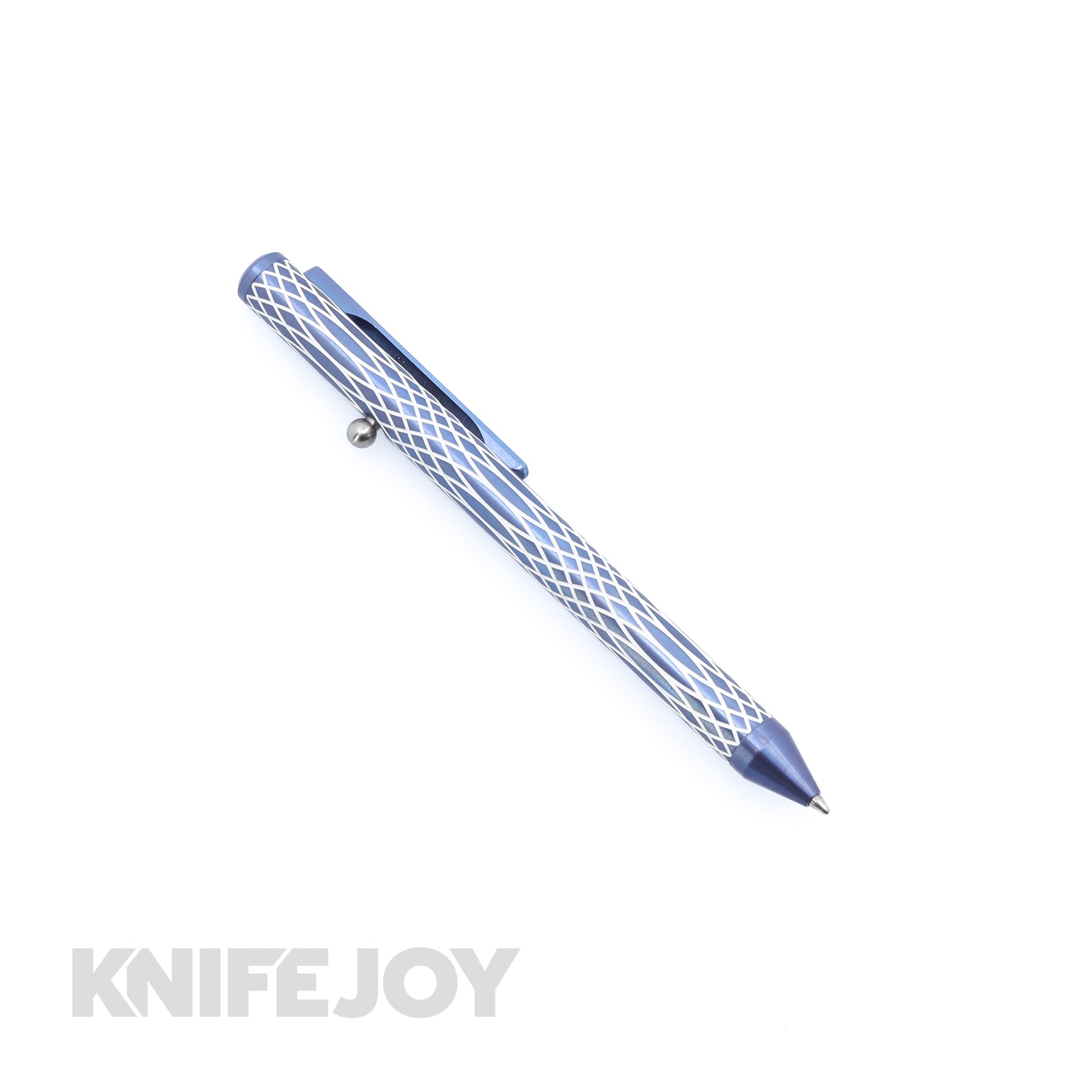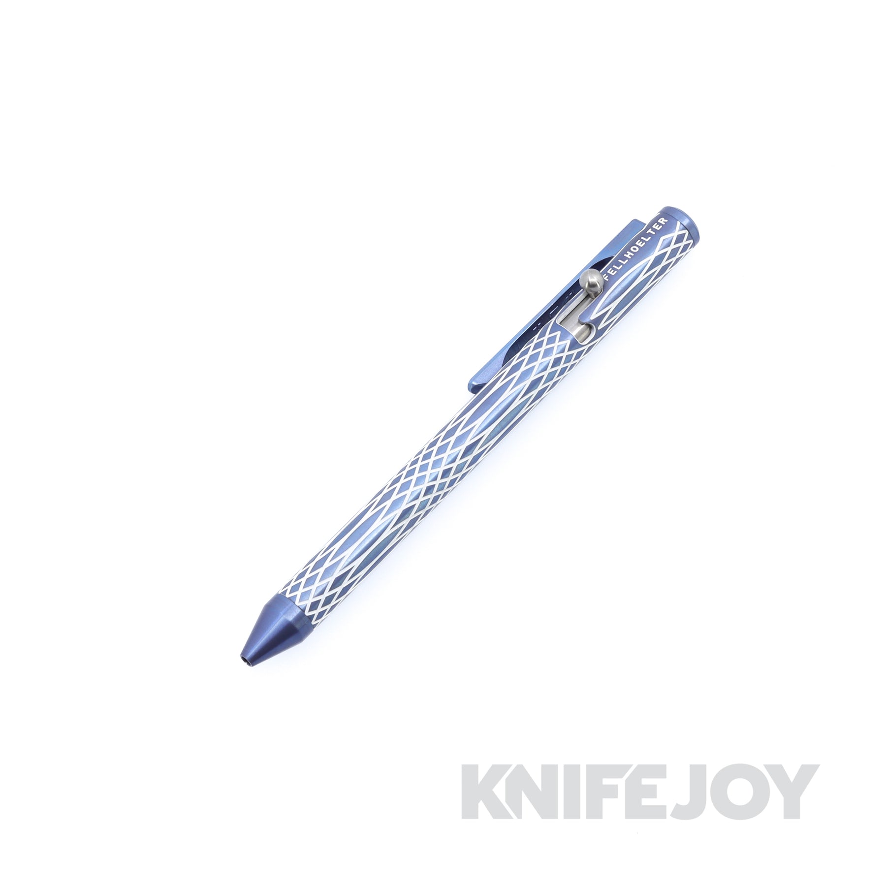 Fellhoelter / Captain Axel Tibolt Engraved Blue / White Sine Wave Titanium Pen with Blue Block Clip