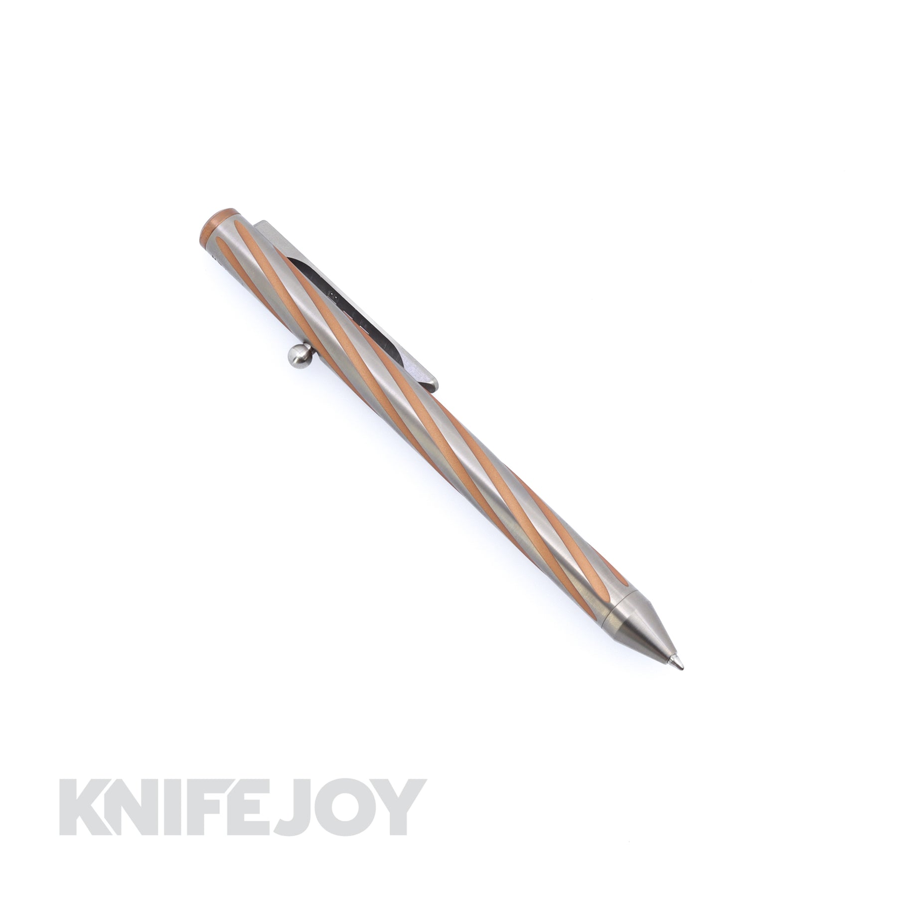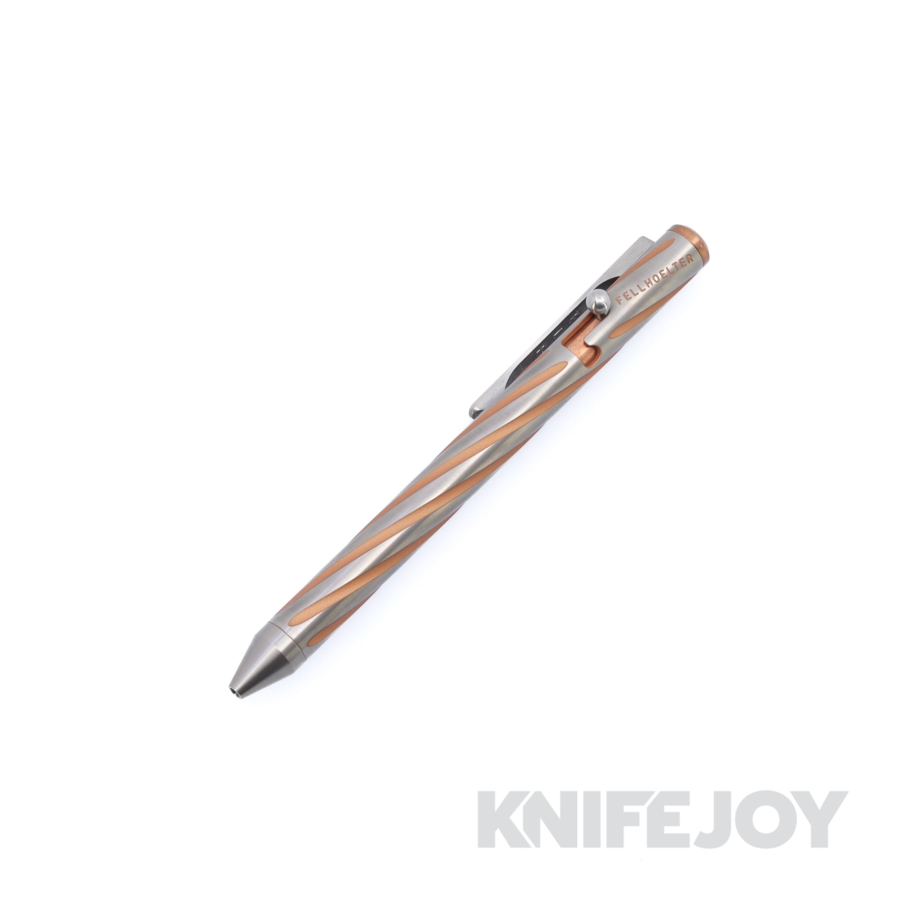 Fellhoelter / Captain Axel Tibolt Engraved Copper Spiral Flutes Titanium Pen with Block Clip and Copper Butt Cap
