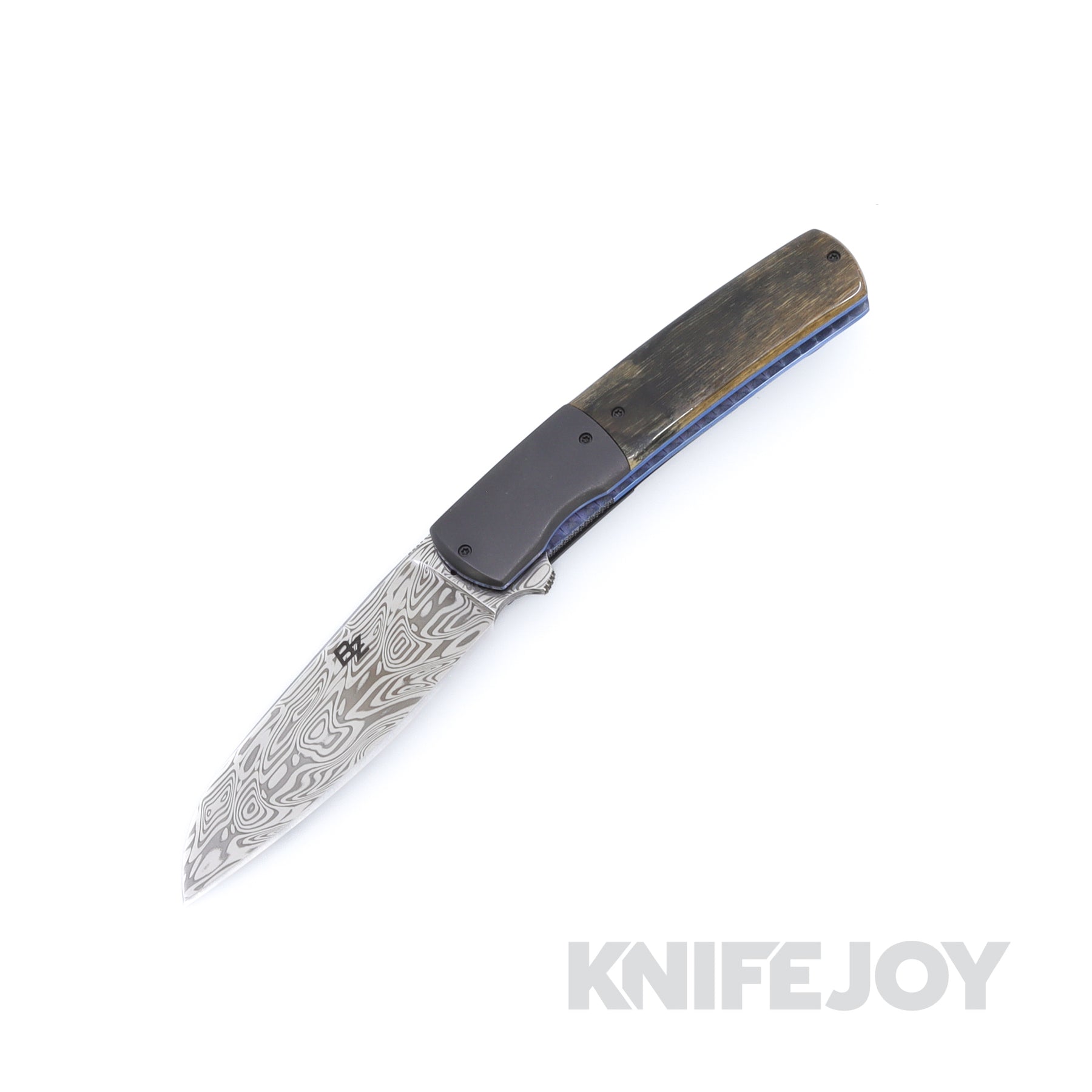 It features a premium Loki Damasteel blade, Mammoth Ivory Scales with Zirconium Bolsters. The liners are Jeweled Titanium with an anodized Titanium Deep Carry Clip.