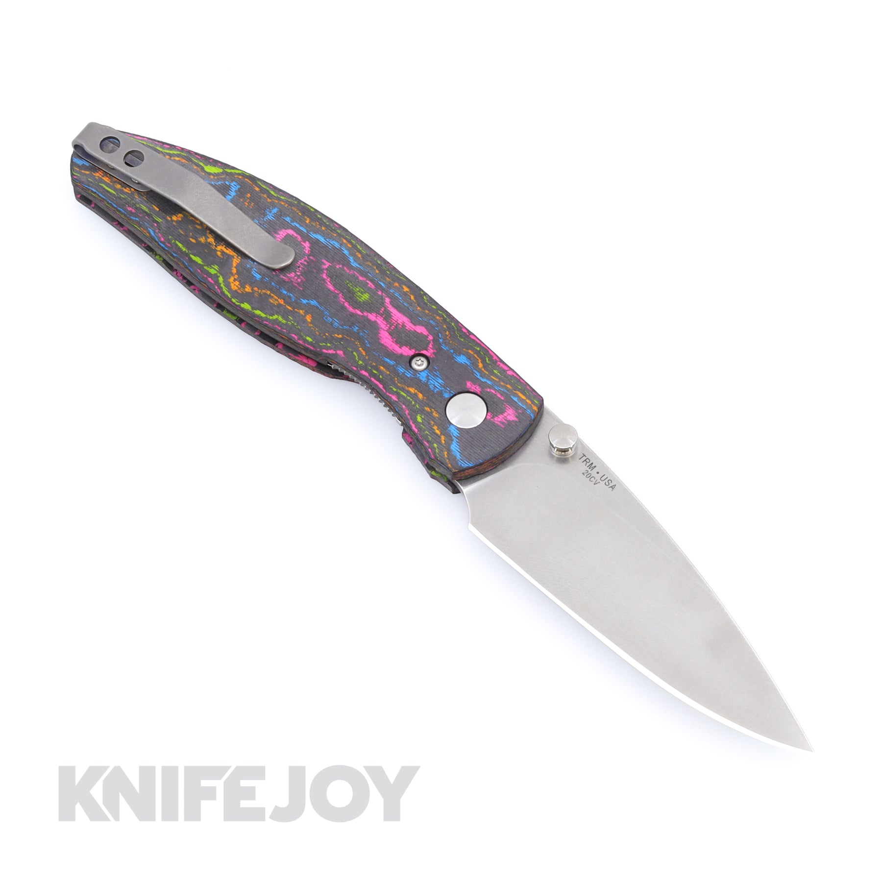 Released in 2019, the TRM Atom quickly became the company’s flagship model, recognized for its featherweight design, exceptional slicing performance, and wide range of customization options. Weighing just 3 oz., the Atom features a 3.5" full flat ground blade crafted from 20CV.