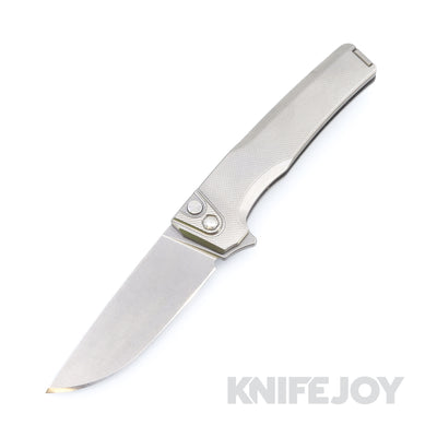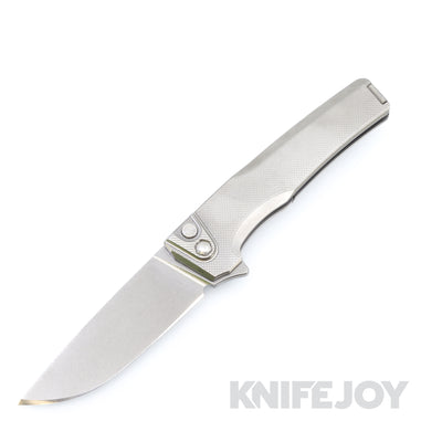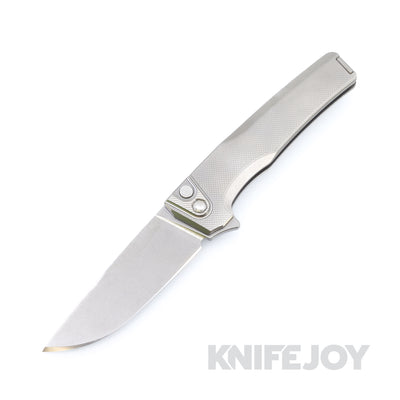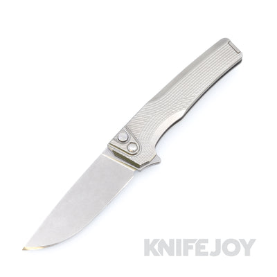 MachineWise Sonora Button Lock Folder Stonewash S90V with Diamond Textured Grade 5 Integral Raw Titanium Handles / Bolster / Clip