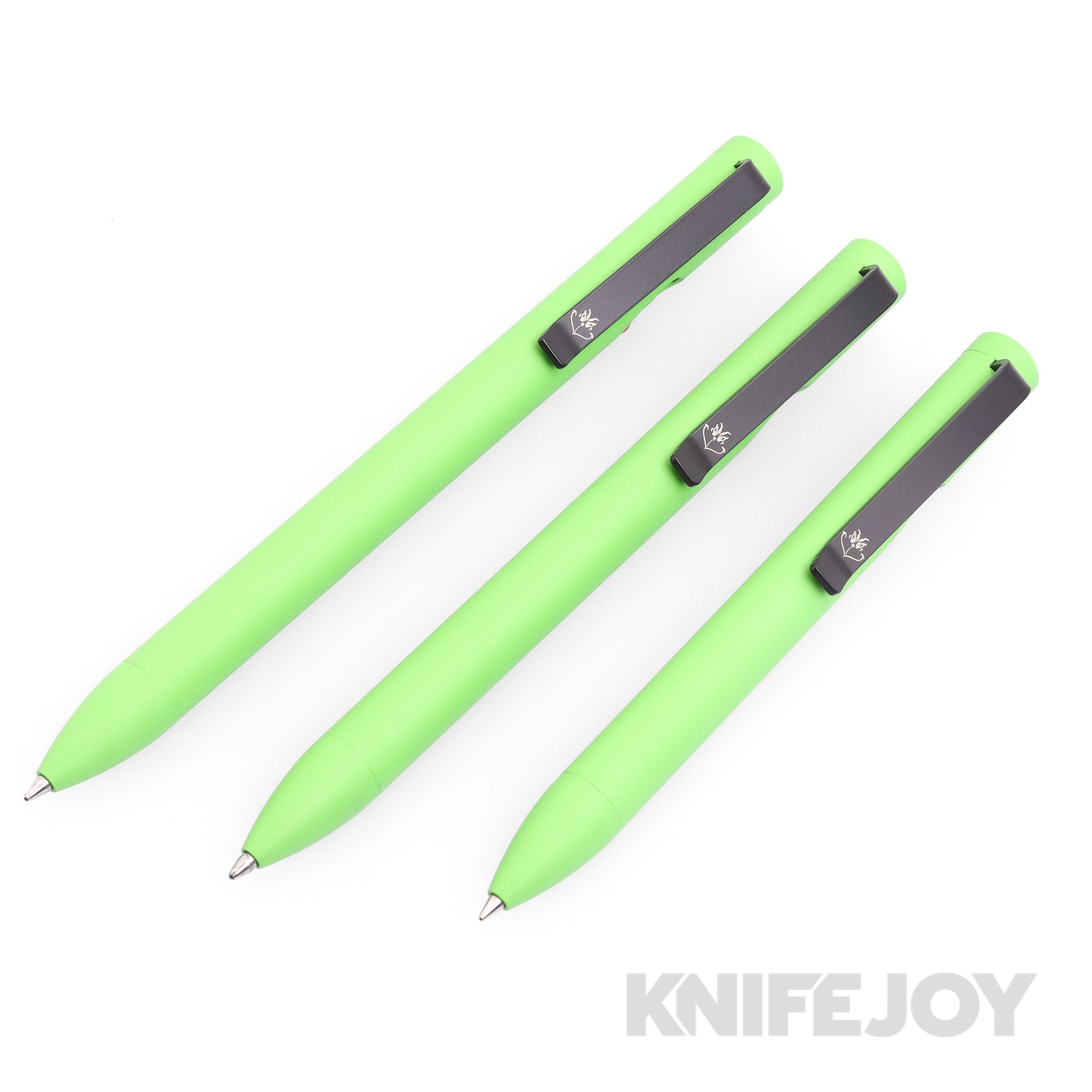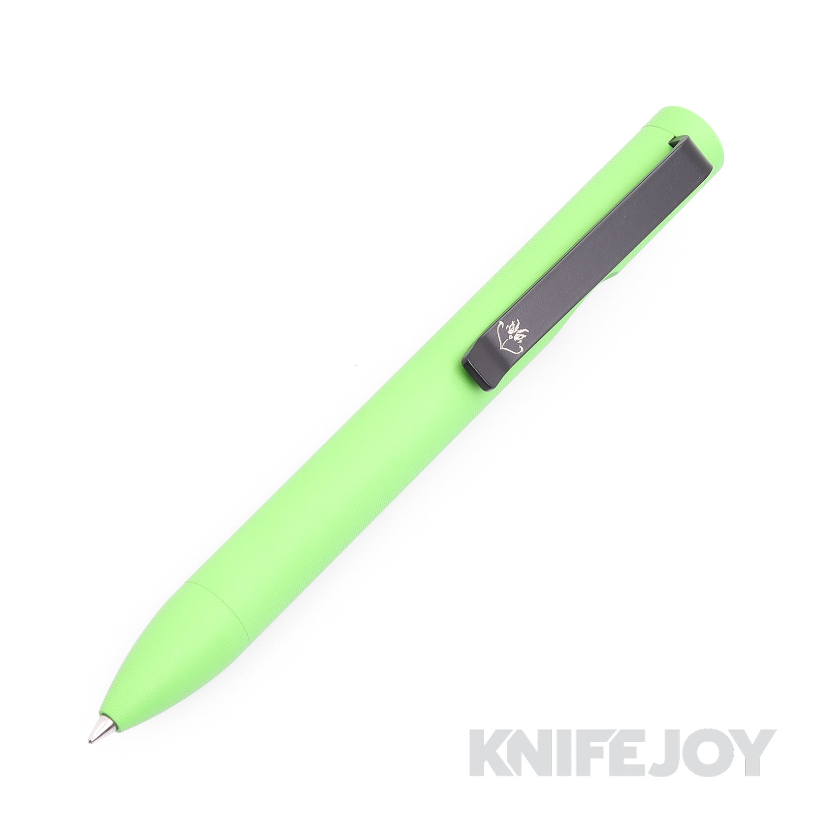 Designed to complement our exclusive family of knives, meet our new Exclusive Pen developed with Tactile Turn, a serious EDC with a unique twist. This standard bolt action model features a milled Titanium body with a Grinch Green cerakote finish, and a very naughty face engraved right on the clip. This is a must-have for any collector and, hands down the most unique pen offered anywhere today. Only available at KnifeJoy!