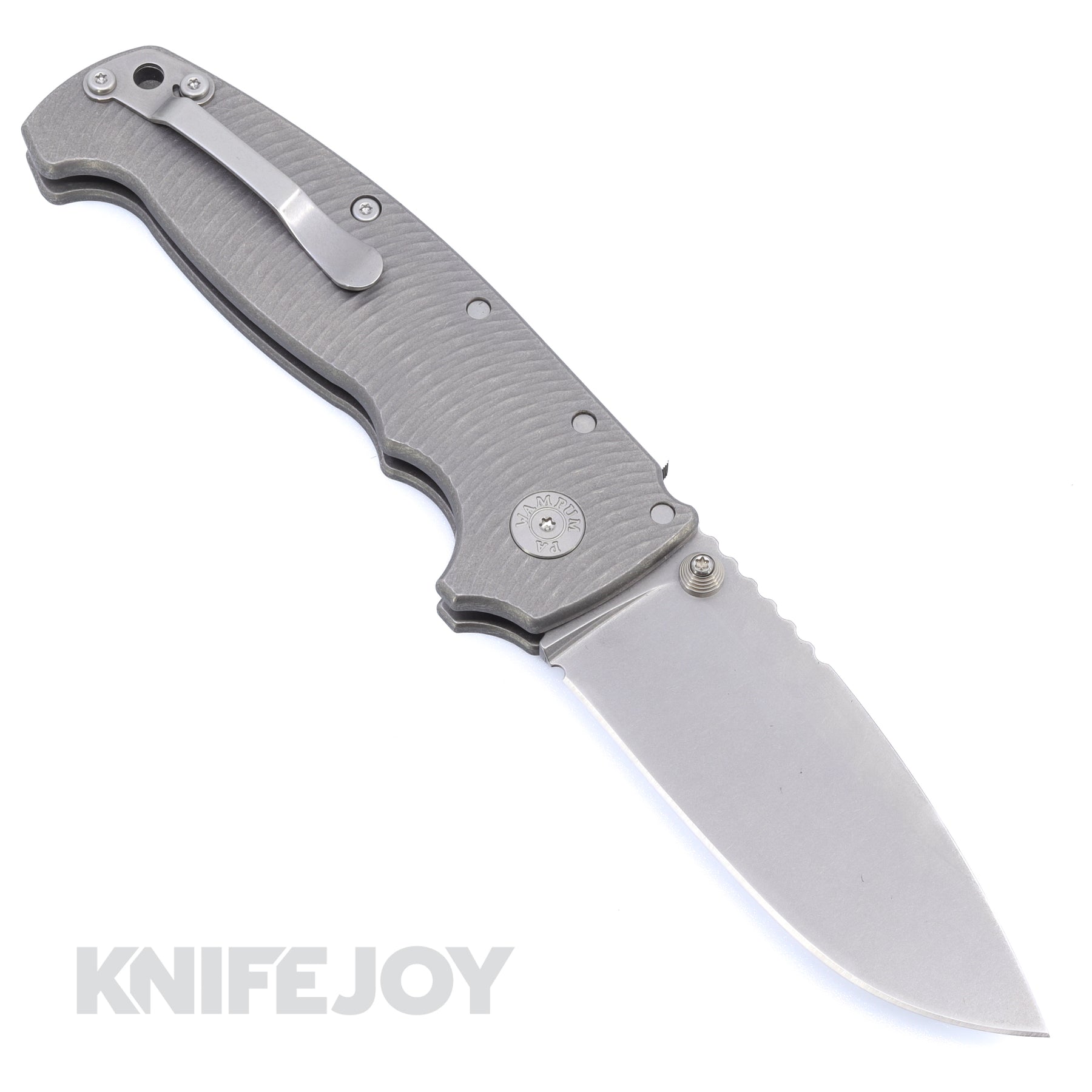 Revolutionary Shark Lock Mechanism: A signature innovation from Andrew Demko, the patented Shark Lock is a self-adjusting lockback mechanism that re-distributes pressure, offering unparalleled strength and security. This robust lock is incredibly smooth and "fidget-friendly," allowing for rapid and satisfying deployment and closure. The lock release is intuitively operated by pulling back on a natural ramp on the spine, which also doubles as a comfortable thumb ramp when the blade is open.