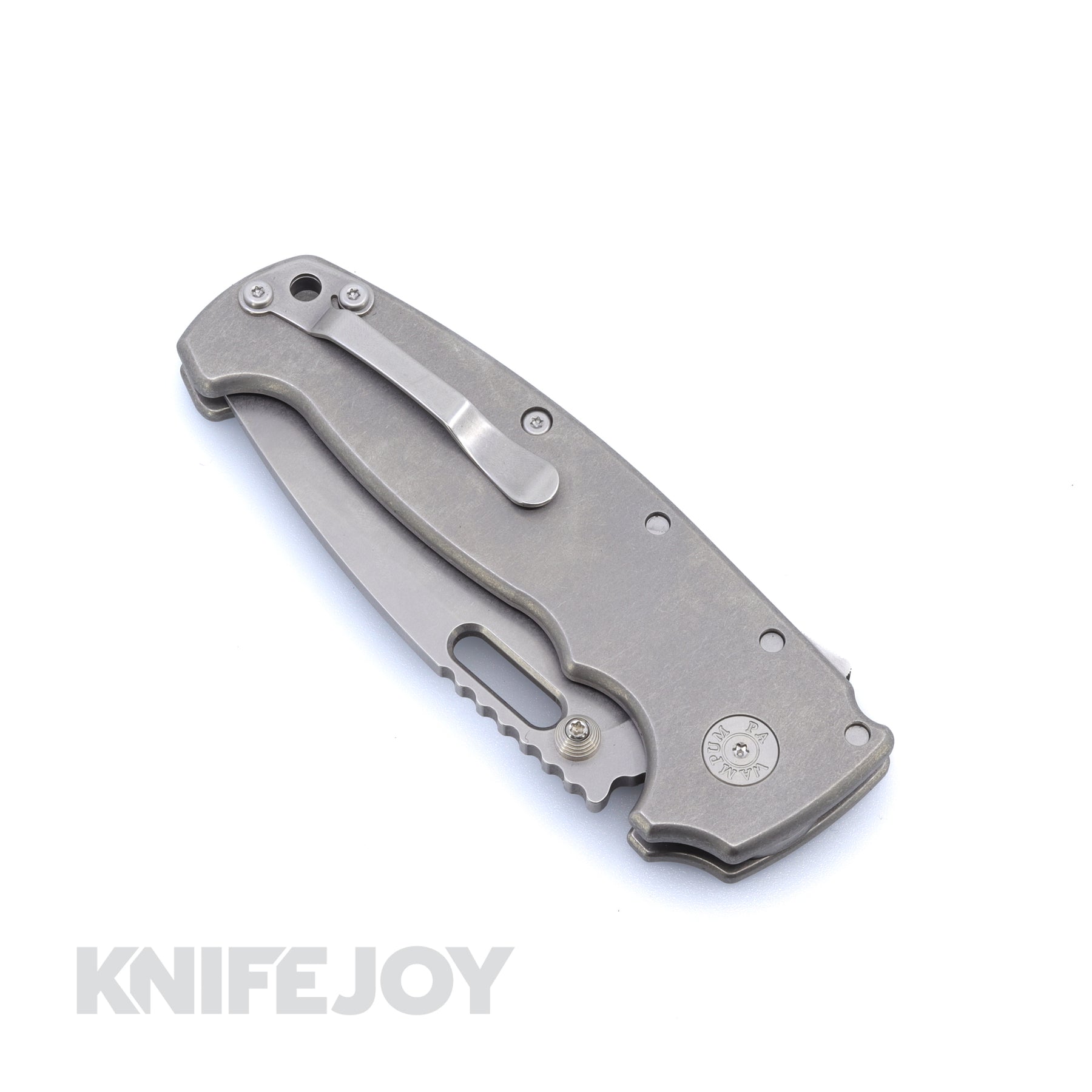 Ergonomic Titanium Handles: The AD20 is outfitted with textured titanium handle scales, providing an incredibly secure and comfortable grip even in adverse conditions. Titanium is a durable and lightweight material, contributing to the knife's overall balance and resilience.