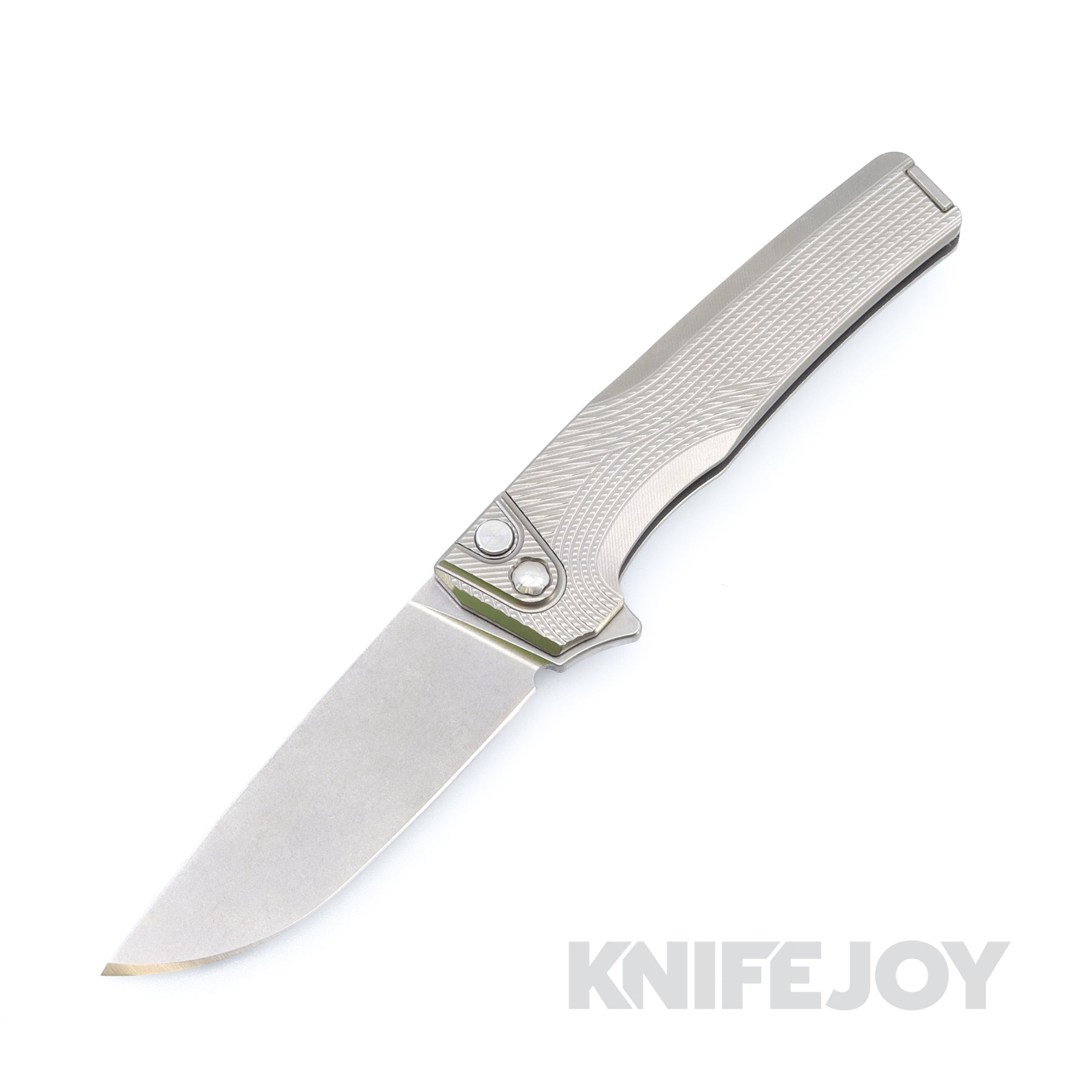 MachineWise Sonora Button Lock Folder Stonewash S90V with Streamline Textured Grade 5 Integral Raw Titanium Handles / Bolster / Clip