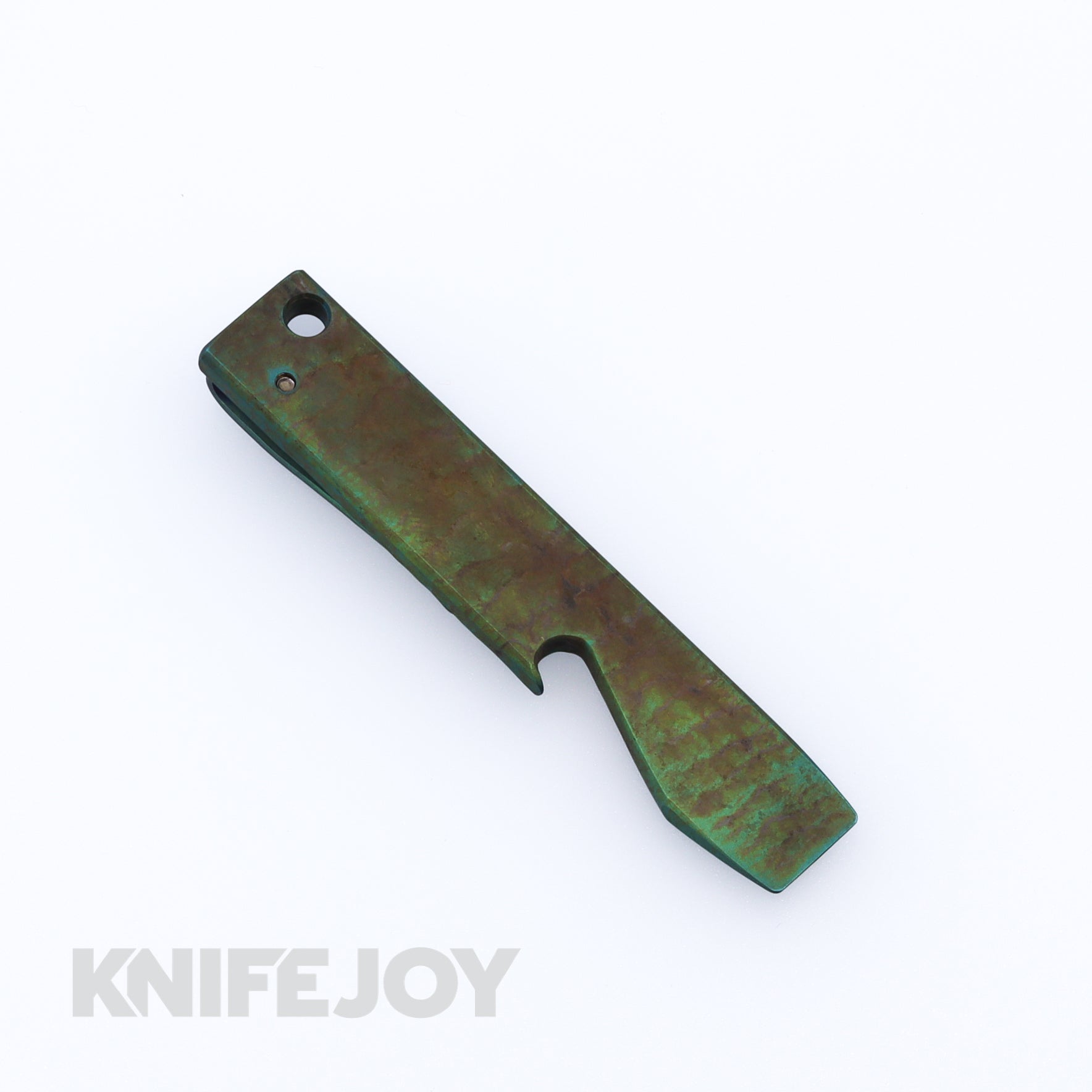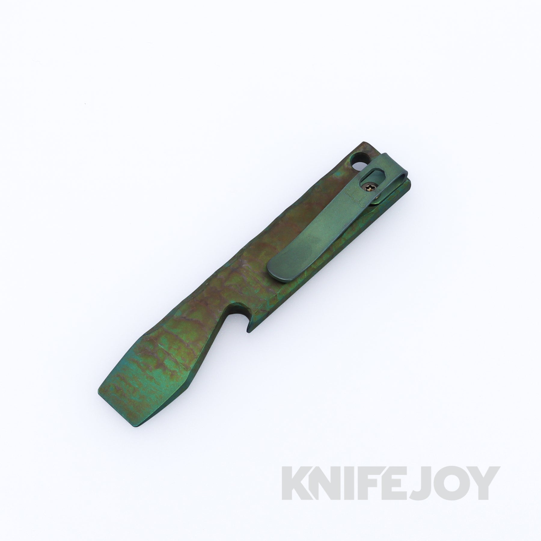 Maverick Customs 4" Distressed Green Titanium Pocket Pry Bar / Bottle Opener