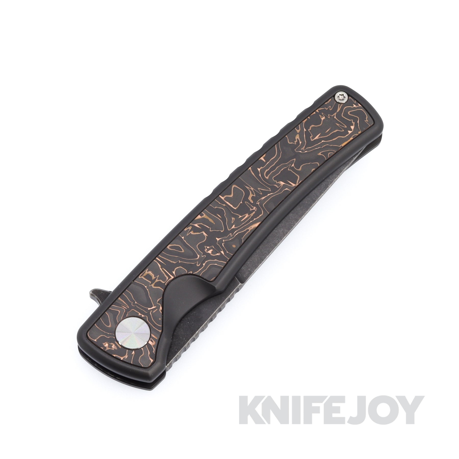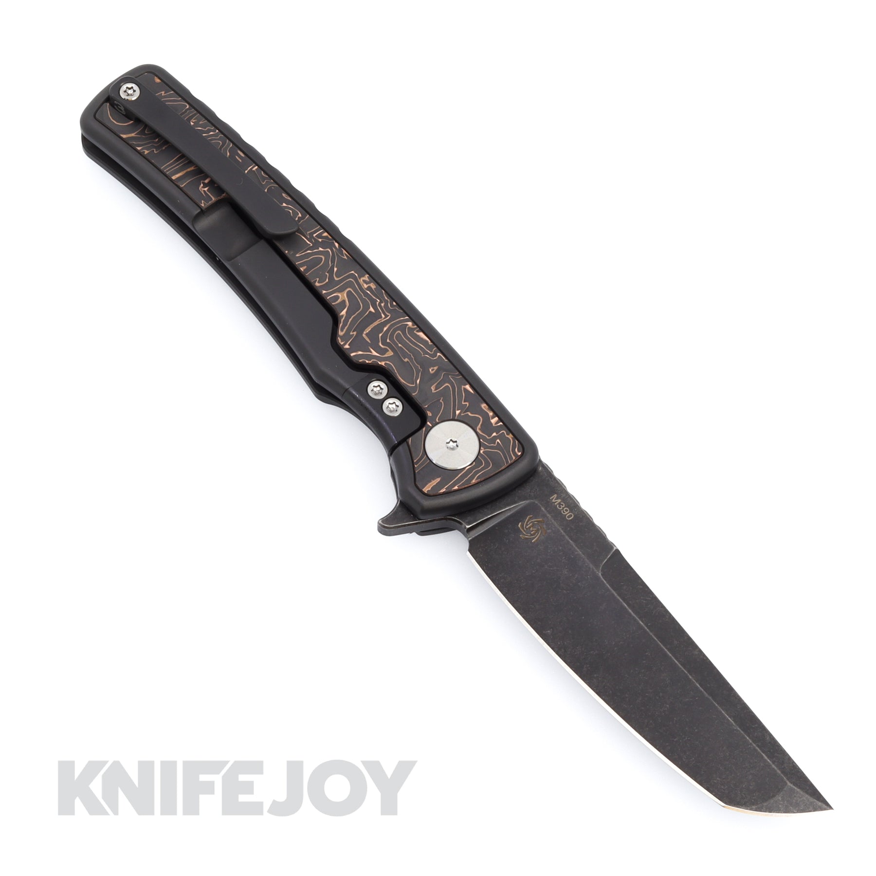 Mechforce Kilby Collab Shard Integral Folder with Black M390 Blade and Black Ti Handle with Copper Foil Carbon Fiber Inserts