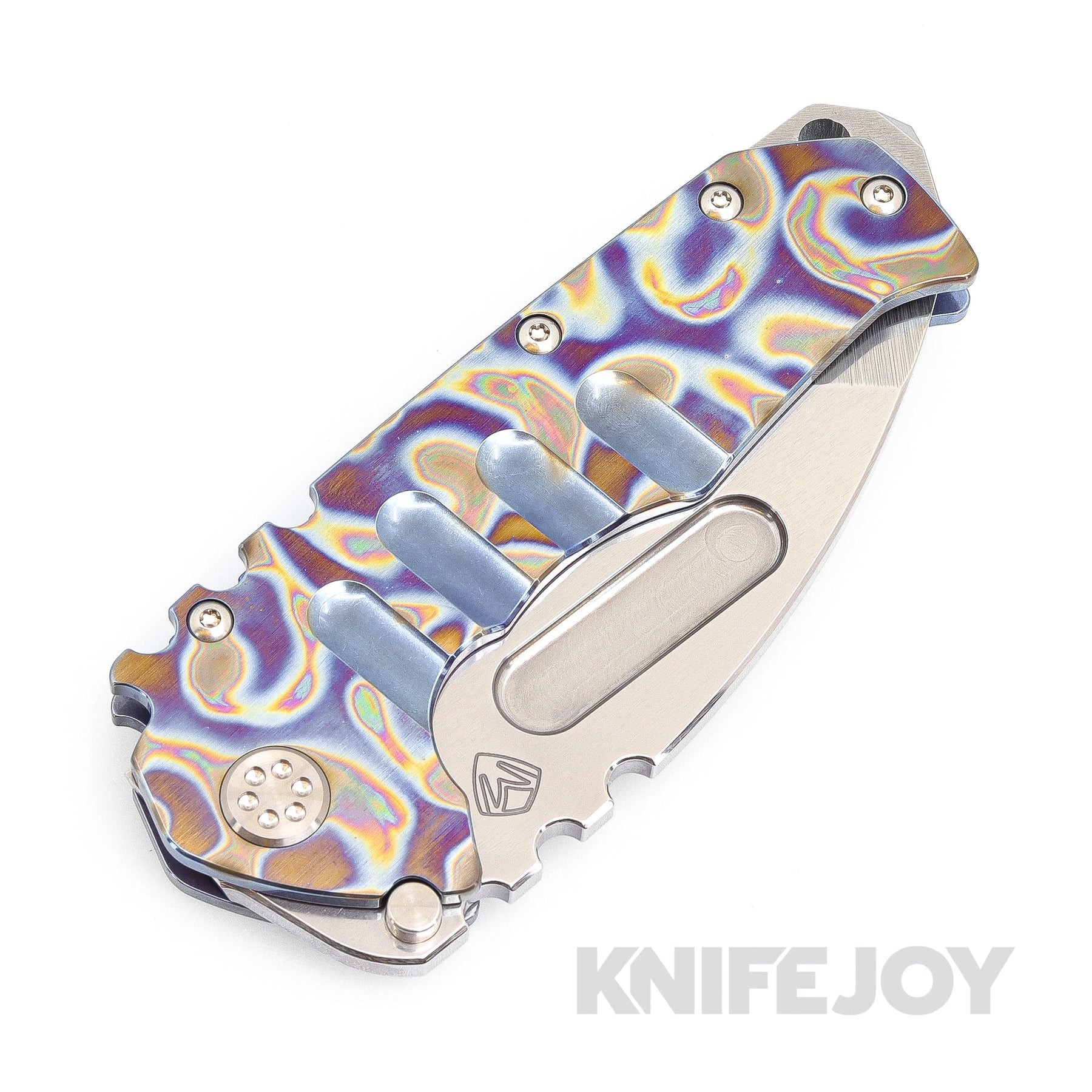 Medford Knives Praetorian "T" CPM 20CV Tumbled Tanto Blade with Flamed Blues Tsunami Handles/ Blue Spring/ Flamed Galaxy Clip KJ Exclusive - Clearance-Open Box