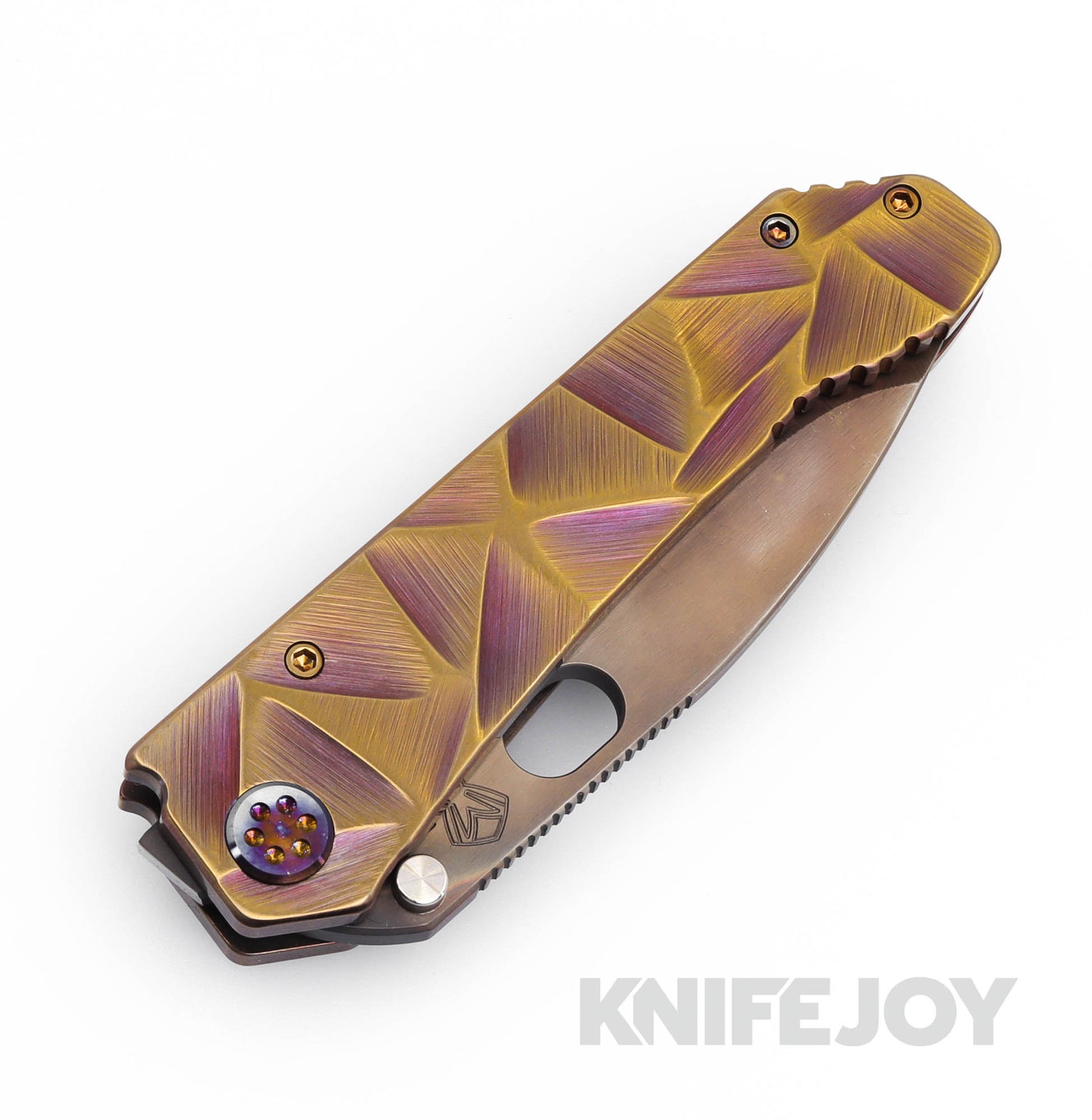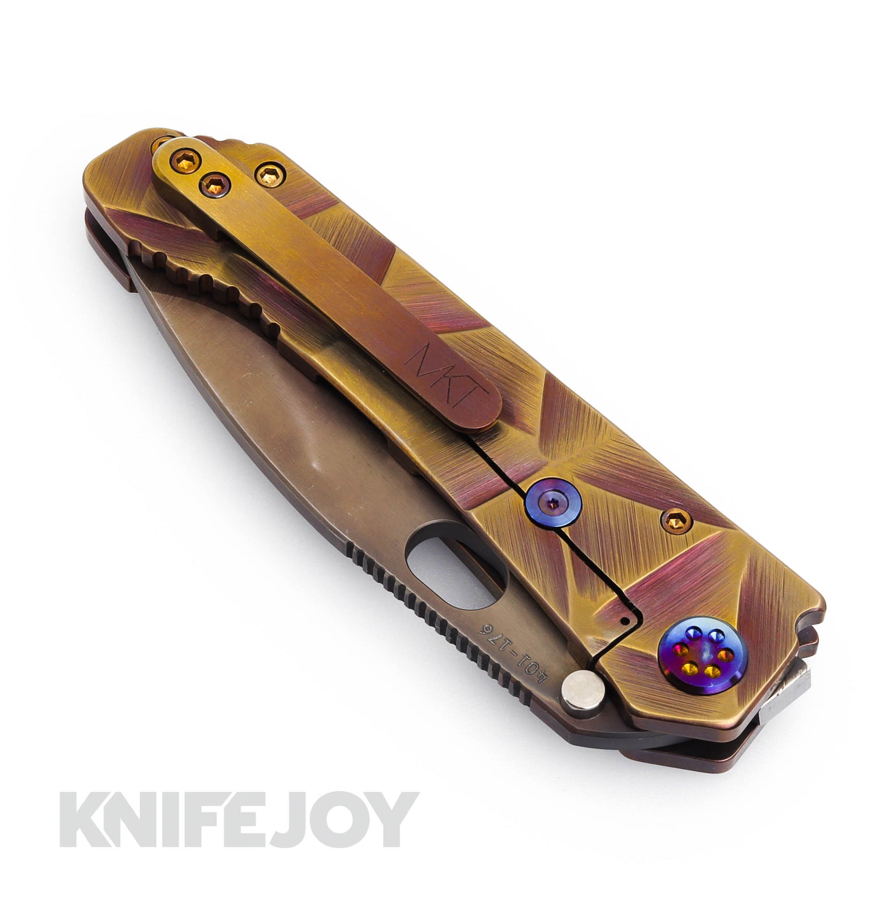 Medford Knives 187 DP D2 Vulcan Drop Point Blade with Rose/ Bronze Stained Glass Handles/ Flamed Hardware/ Bronze Clip