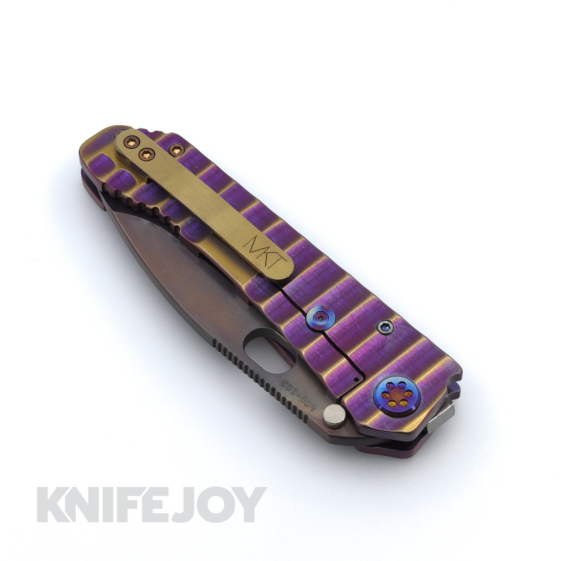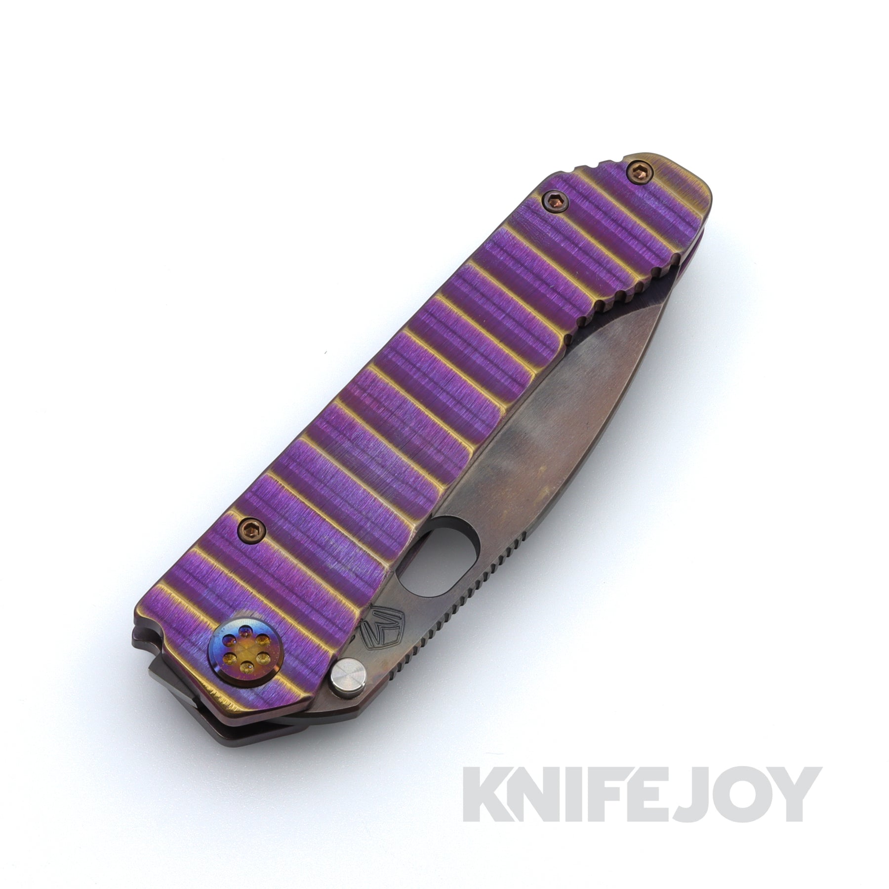 Medford Knives 187 DPT D2 Vulcan Drop Point Blade with Violet-Bronze Gator Belly Handles / Flamed Hardware / Bronze Clip
