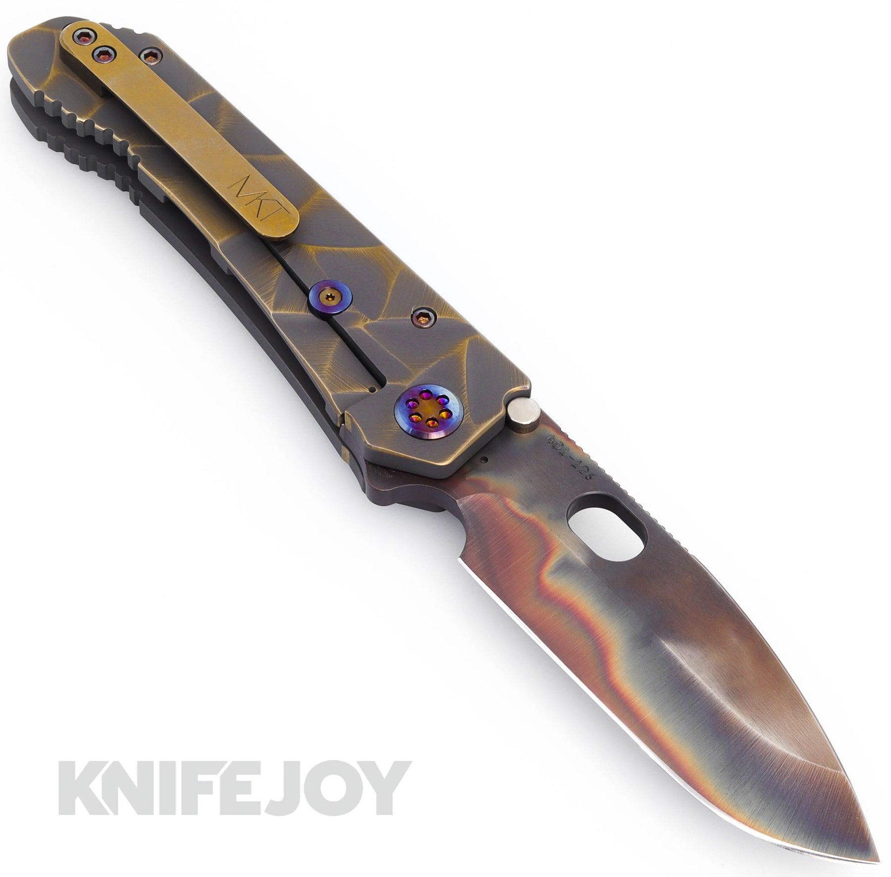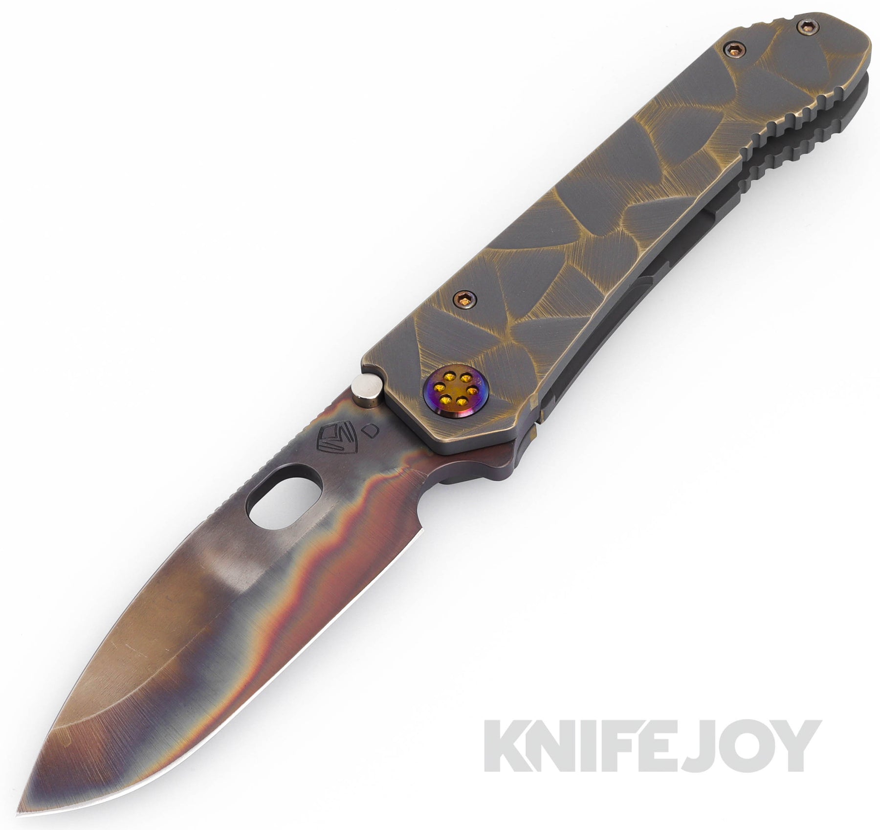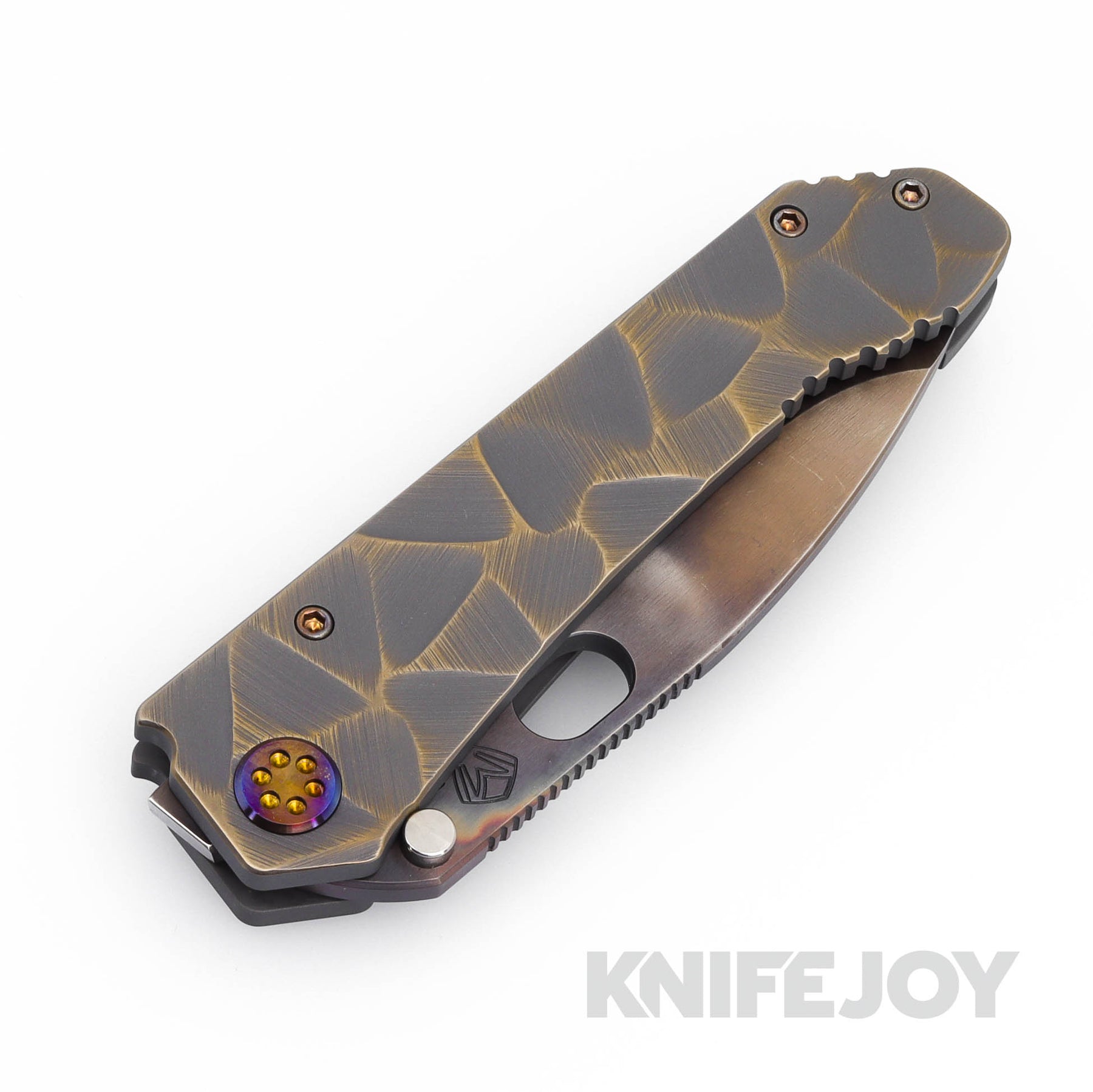 Medford Knives 187DP D2 Vulcan Blade with Rose/ Bronze Stained Glass Handles/ Flamed Hardware/ Rose/Brz Clip