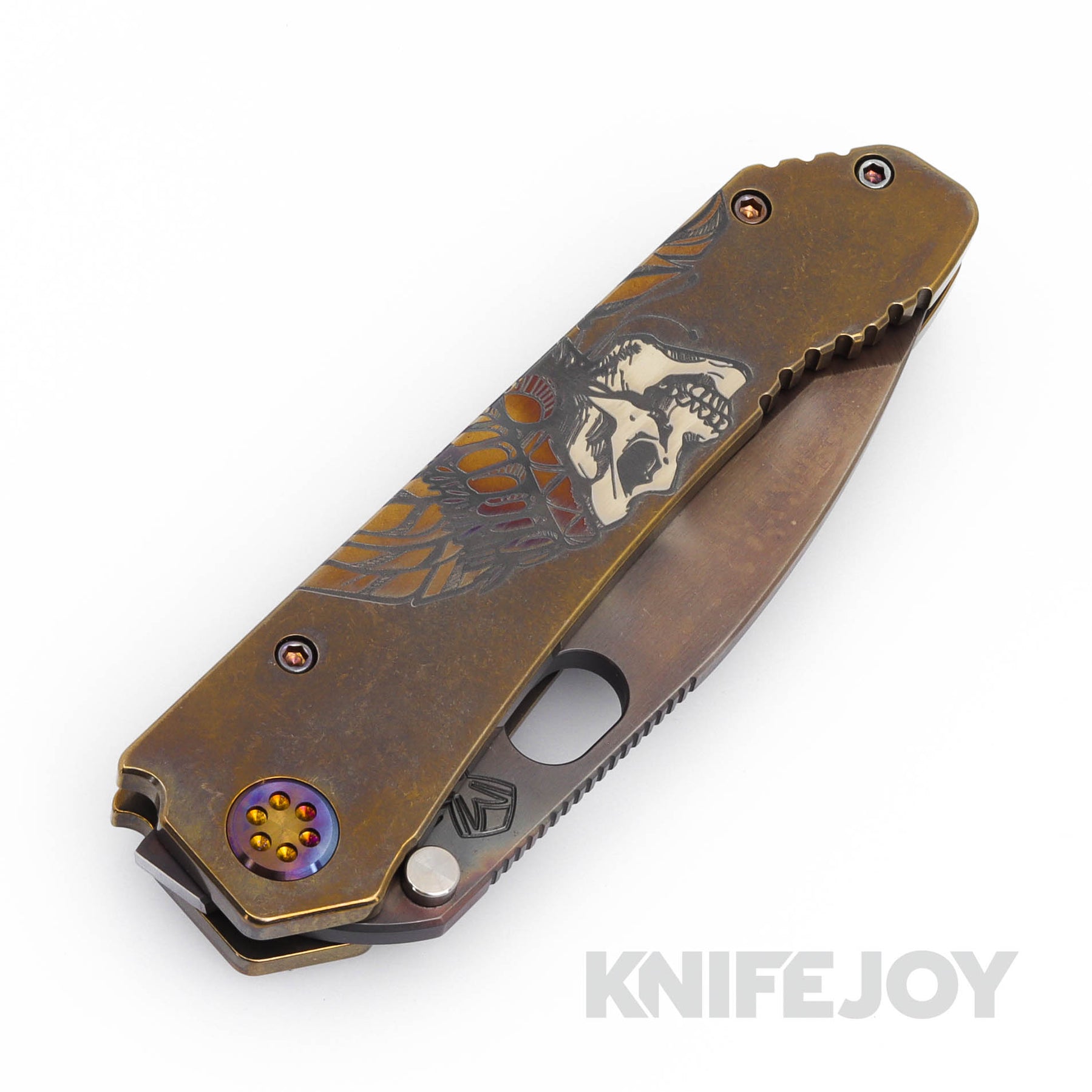 Medford Knives 187DPT D2 Vulcan Tanto Blade with Bronze Indian Head Handles/ Flamed Hardware and Clip