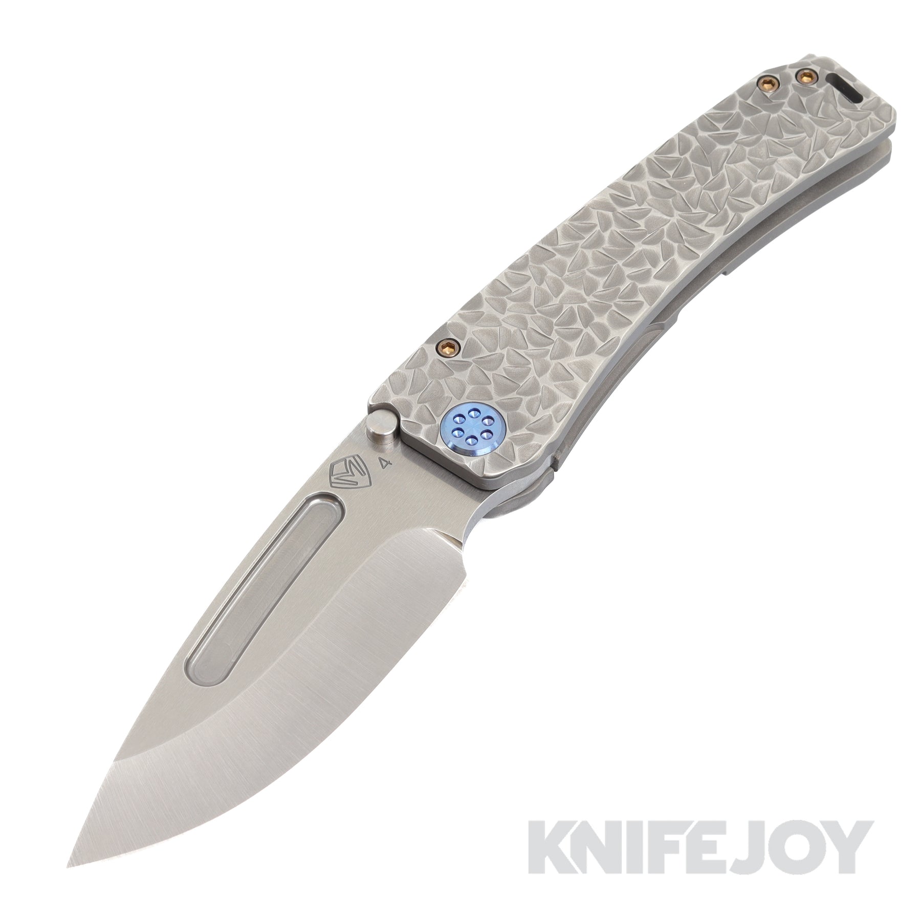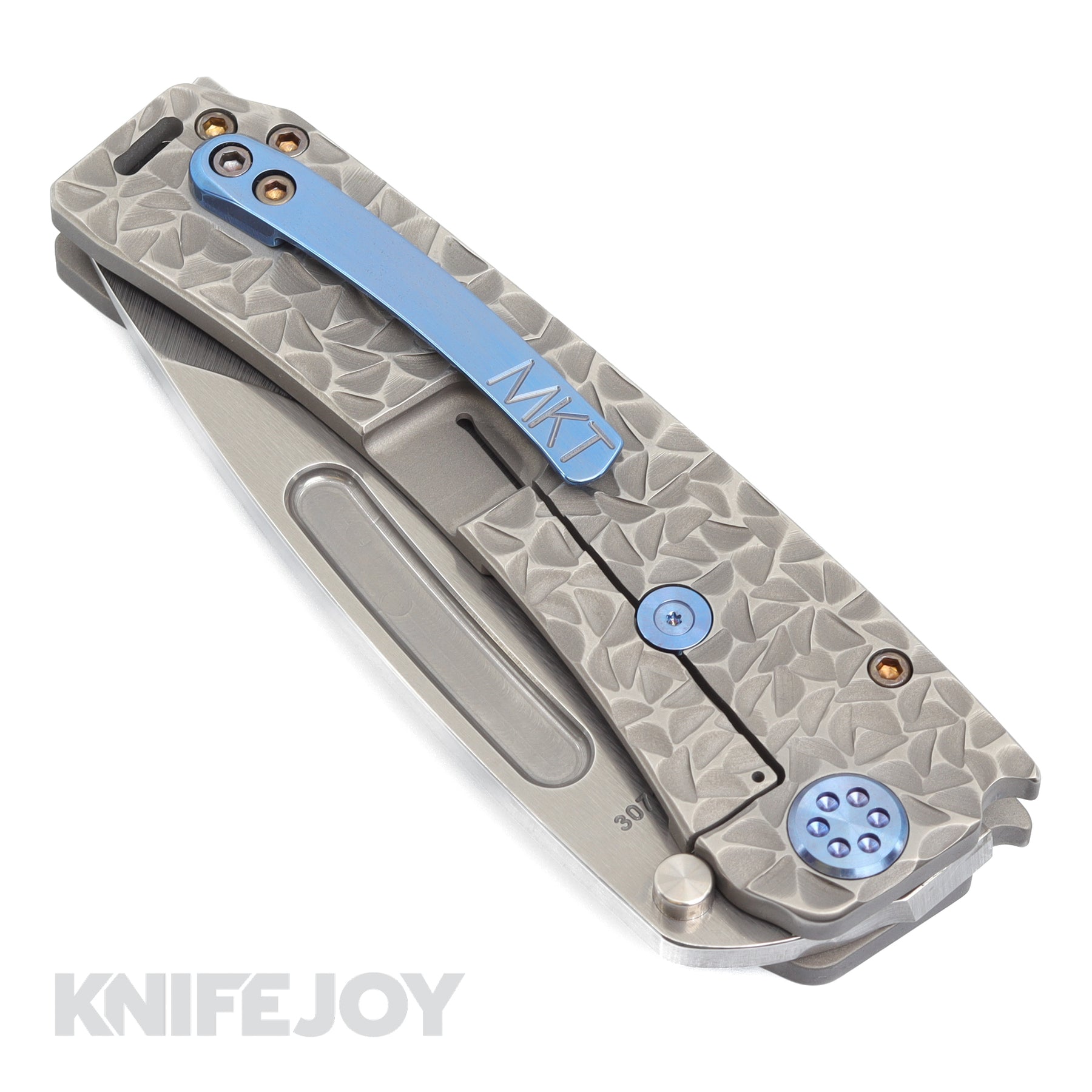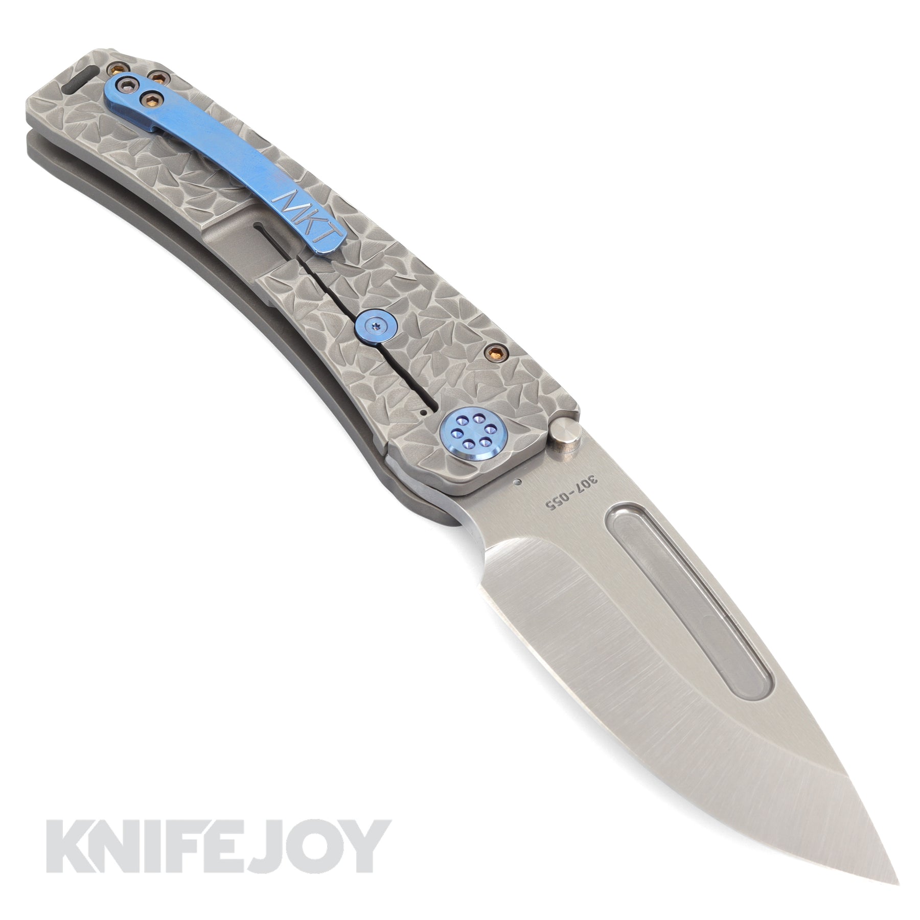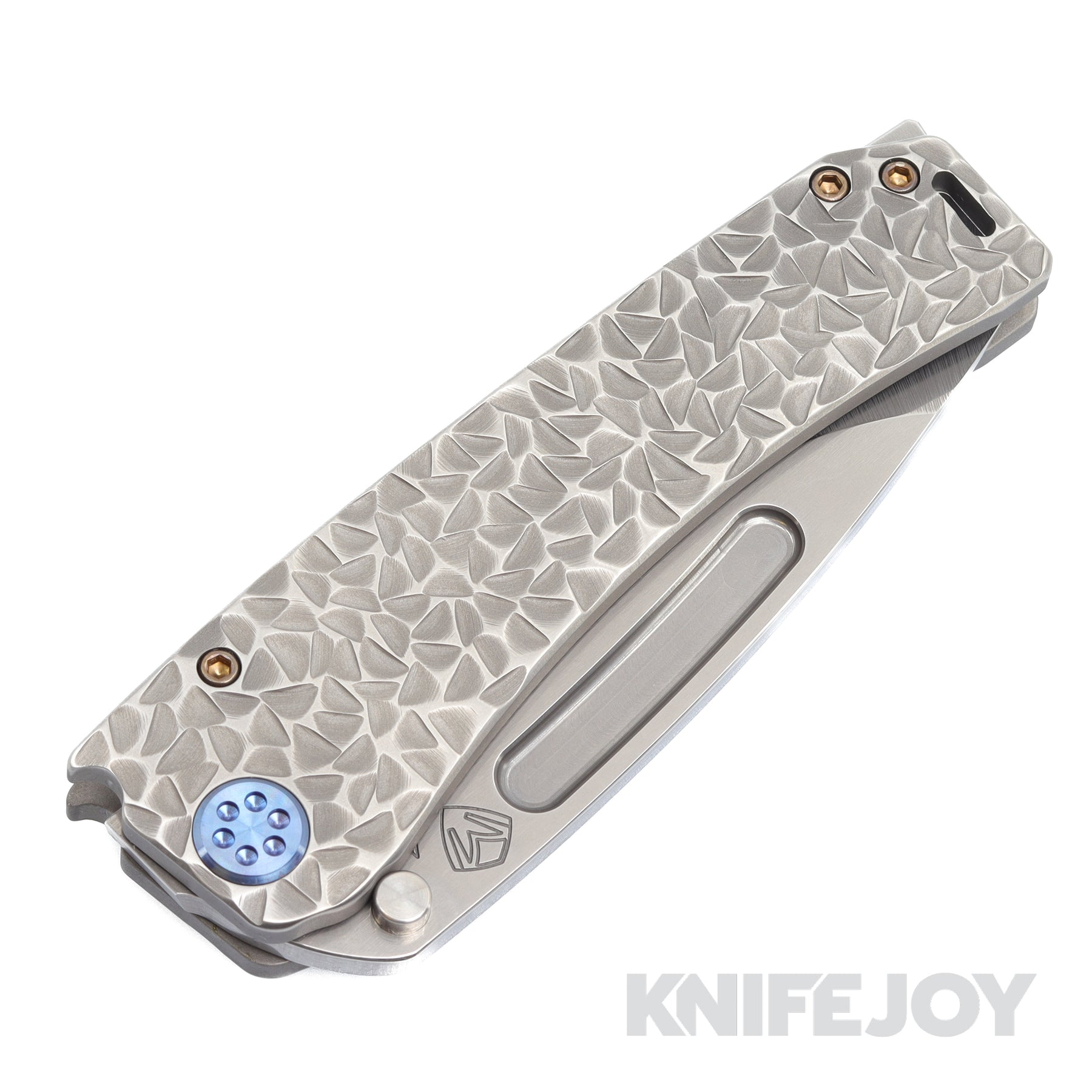 Medford Knives Marauder-H S45VN Tumbled Drop Point Blade with BB/ Brush Silver Peaks & Valleys Handles/ Blue Hardware and Clip