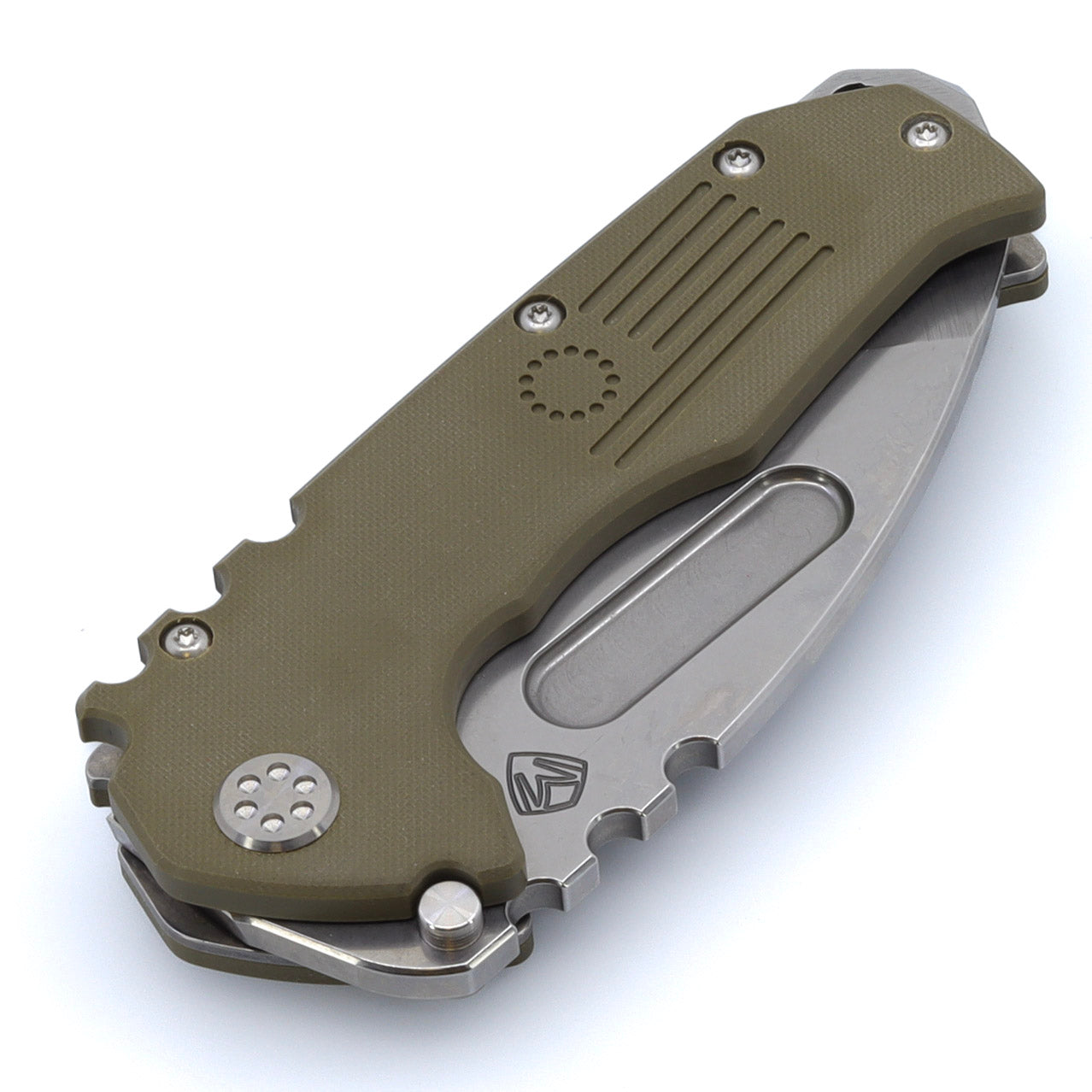 Medford Knives Praetorian Scout M/P D2 Tumbled Tanto Blade with OD Green G10 Handles and Standard Hardware / Clip / Breaker