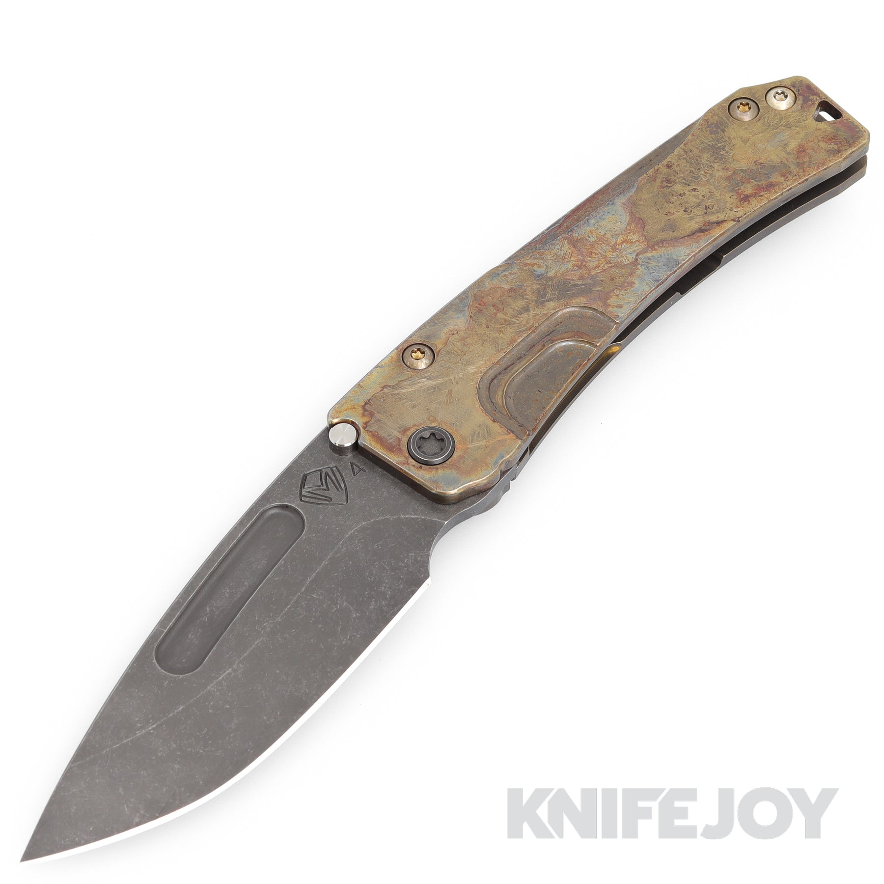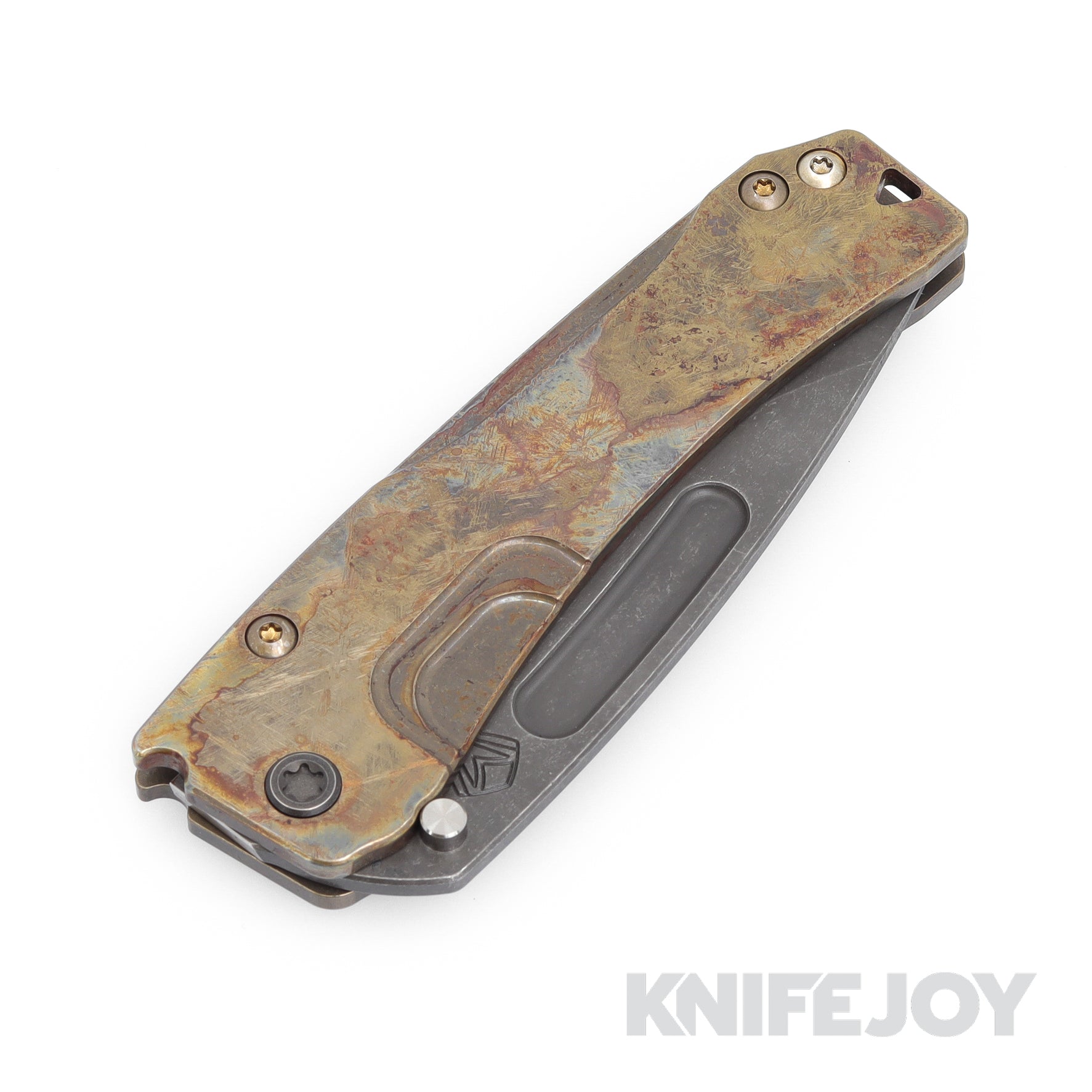 Medford Knives Slim Midi Marauder S45VN Acid/ Distressed Drop Point Blade with "Scorched Earth" Handles/ Old School Bronze Spring/ Maker's Ano Hardware and Clip