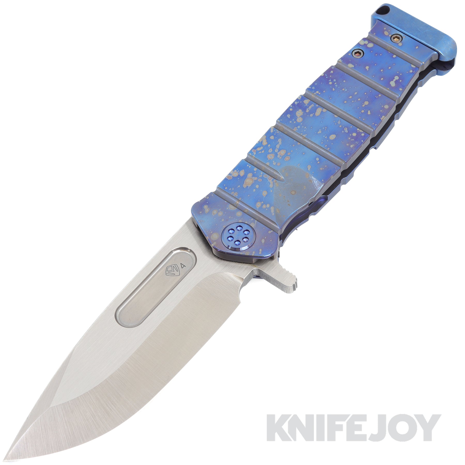 Medford Knives USMC FF S45VN Satin Flats Blade with Flamed Galaxy Handles/ Blue Spring/ Blue Hardware/ Flamed Galaxy Clip